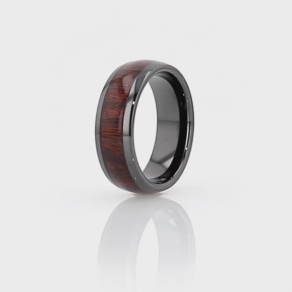 Alianza de boda para hombre de cerámica negra con incrustaciones de palisandro