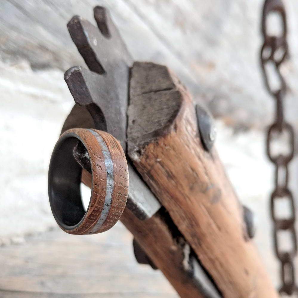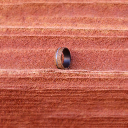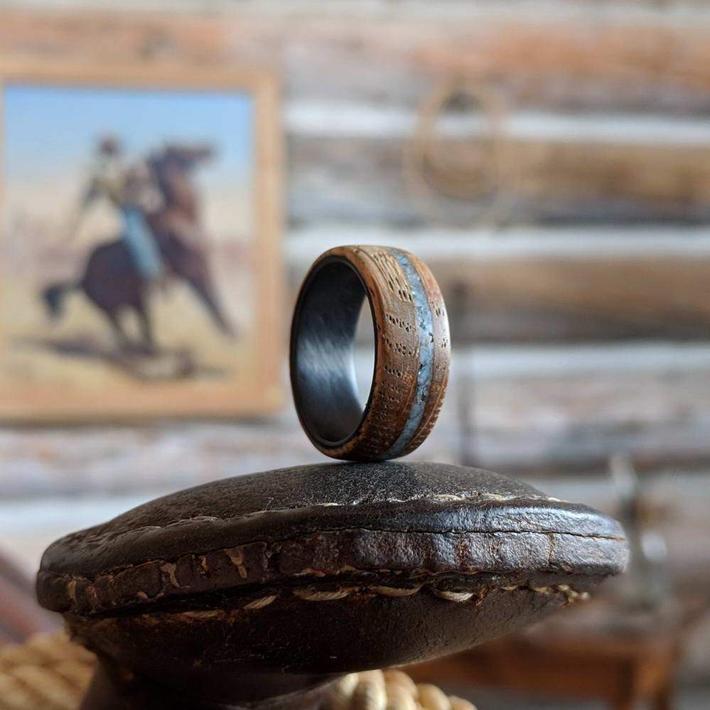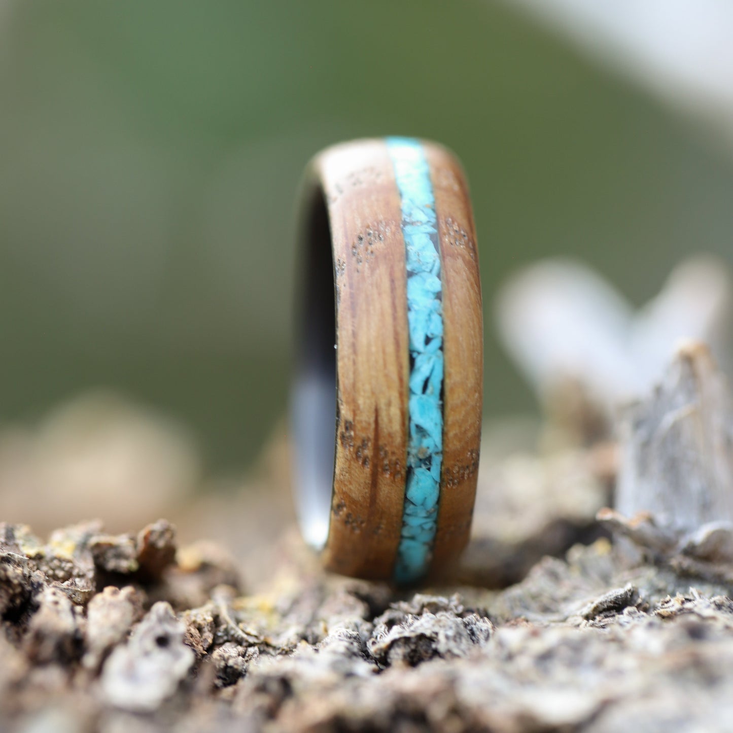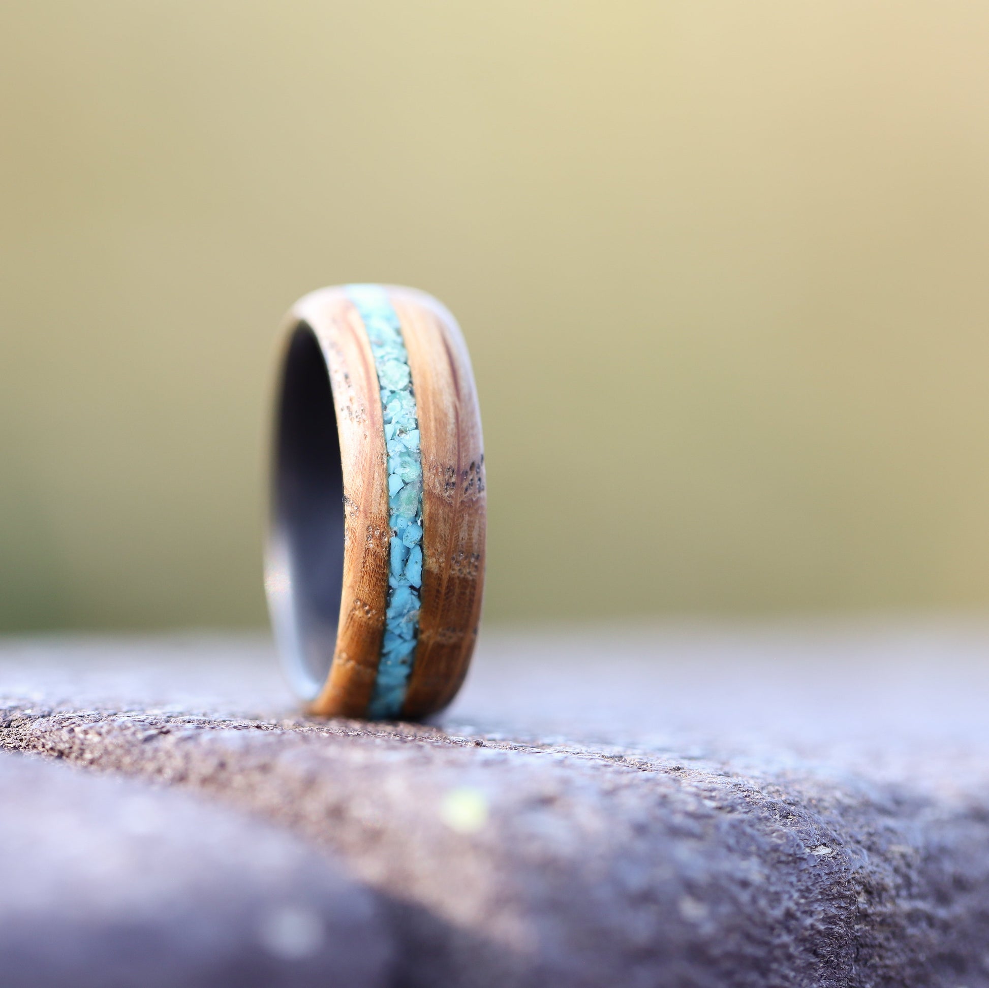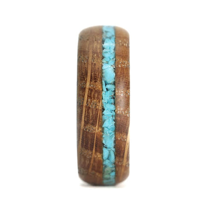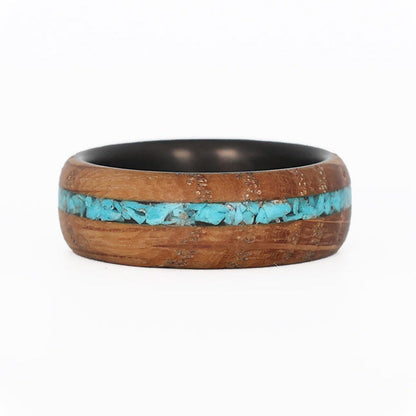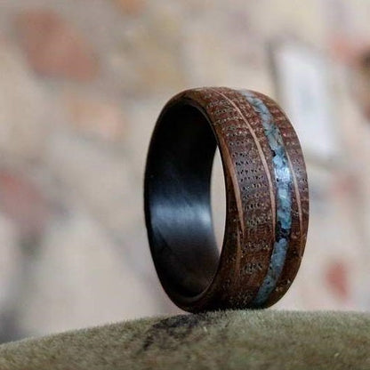 Alianza de madera para hombre con incrustaciones de piedra turquesa e interior de fibra de carbono