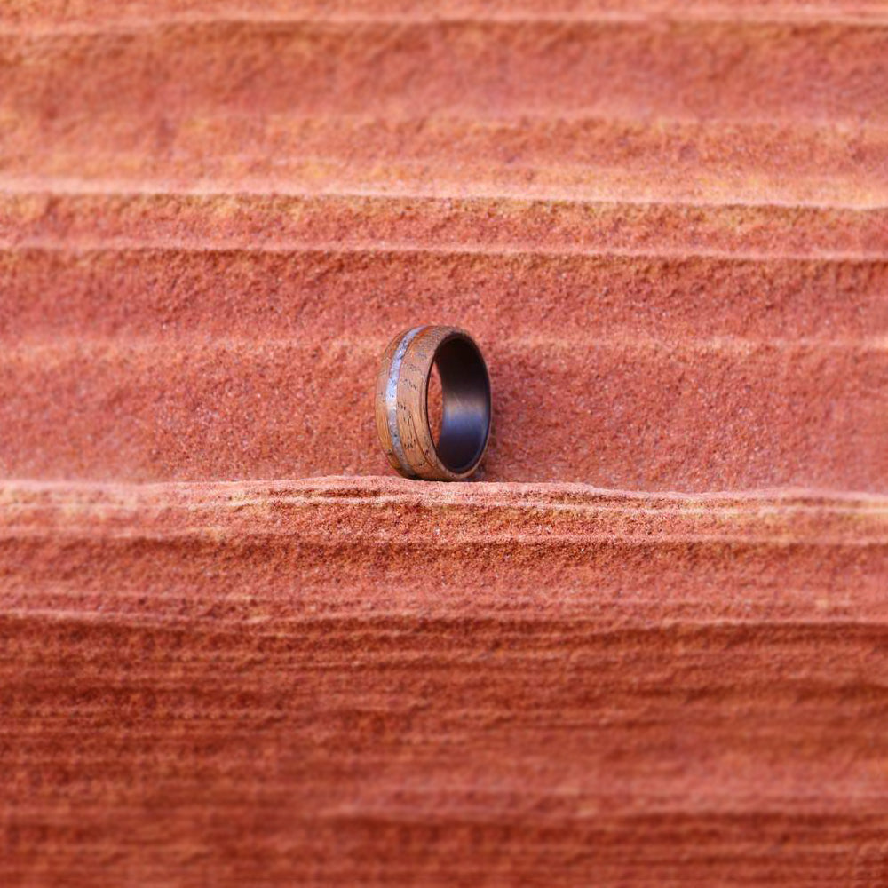 Alianza de boda para hombre de cerámica negra con incrustaciones de palisandro
