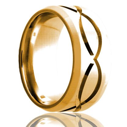 Alianza de bodas de oro de 14 k con ranuras onduladas infinitas y bordes biselados