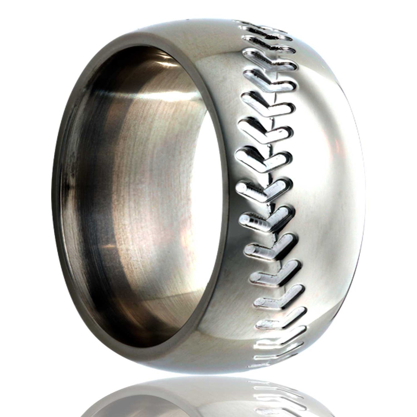 Alianza de boda de titanio con diseño de béisbol abovedado