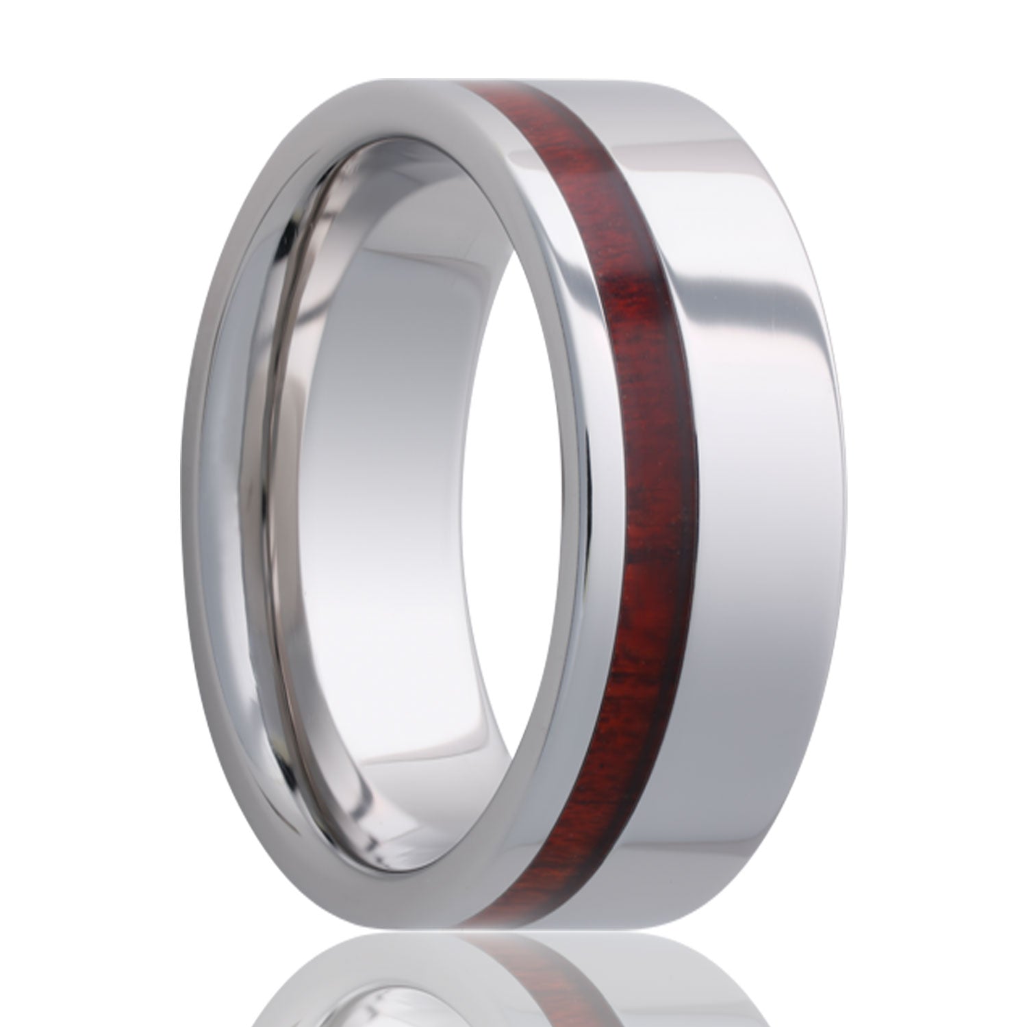 Alianza de boda de tungsteno con incrustaciones de madera de sangre y bordes biselados