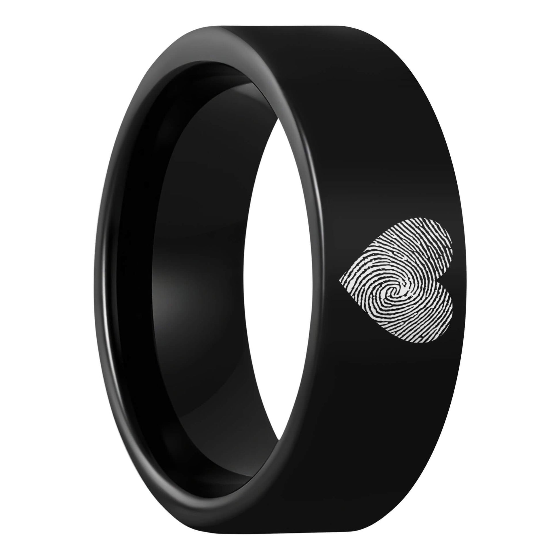 Alianza de boda de tungsteno negro grabada con escritura personalizada