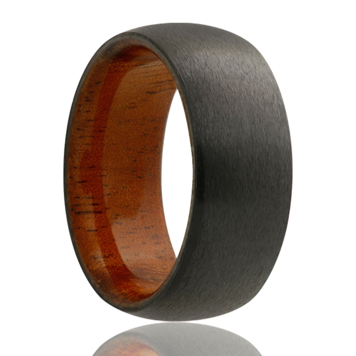 Alianza de boda de zirconio satinado abovedado con centro de madera de koa