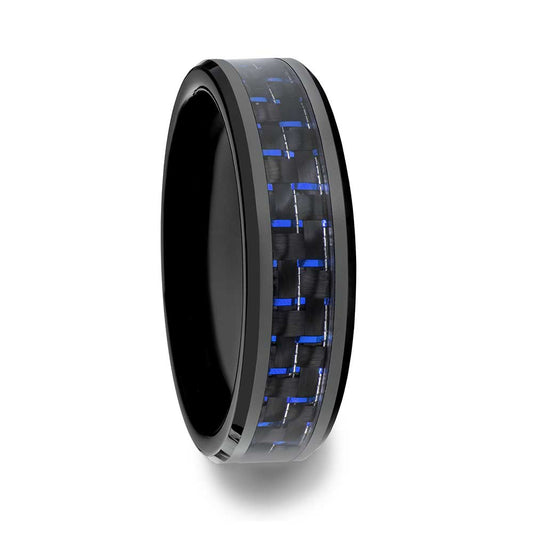 Alianza de boda para hombre de tungsteno negro con incrustaciones de fibra de carbono verde y negra