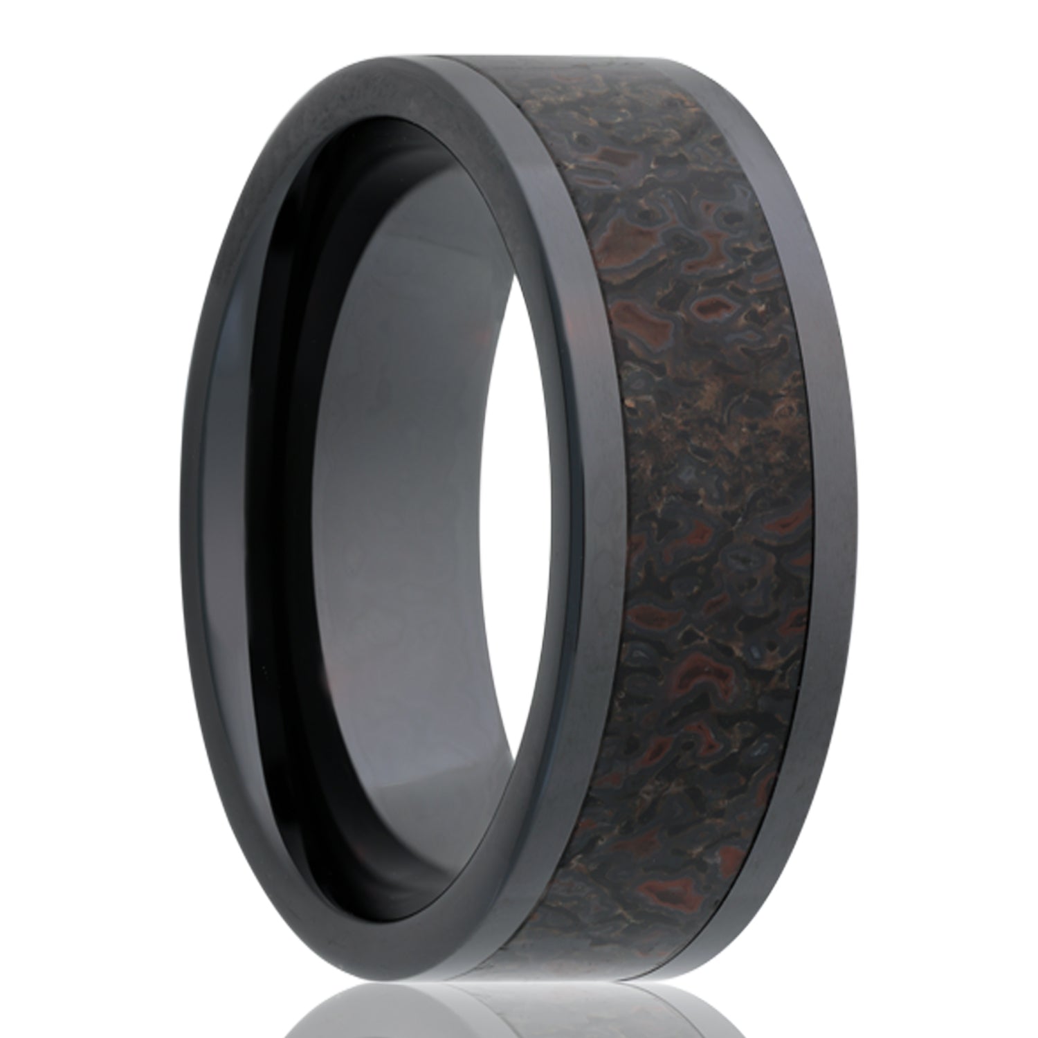 Alianza de boda de cerámica con incrustaciones de hueso de dinosaurio gris