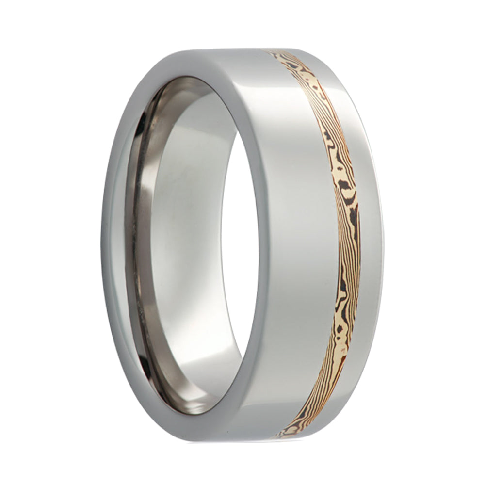 Alianza de boda de tungsteno con incrustaciones asimétricas Mokume Gane