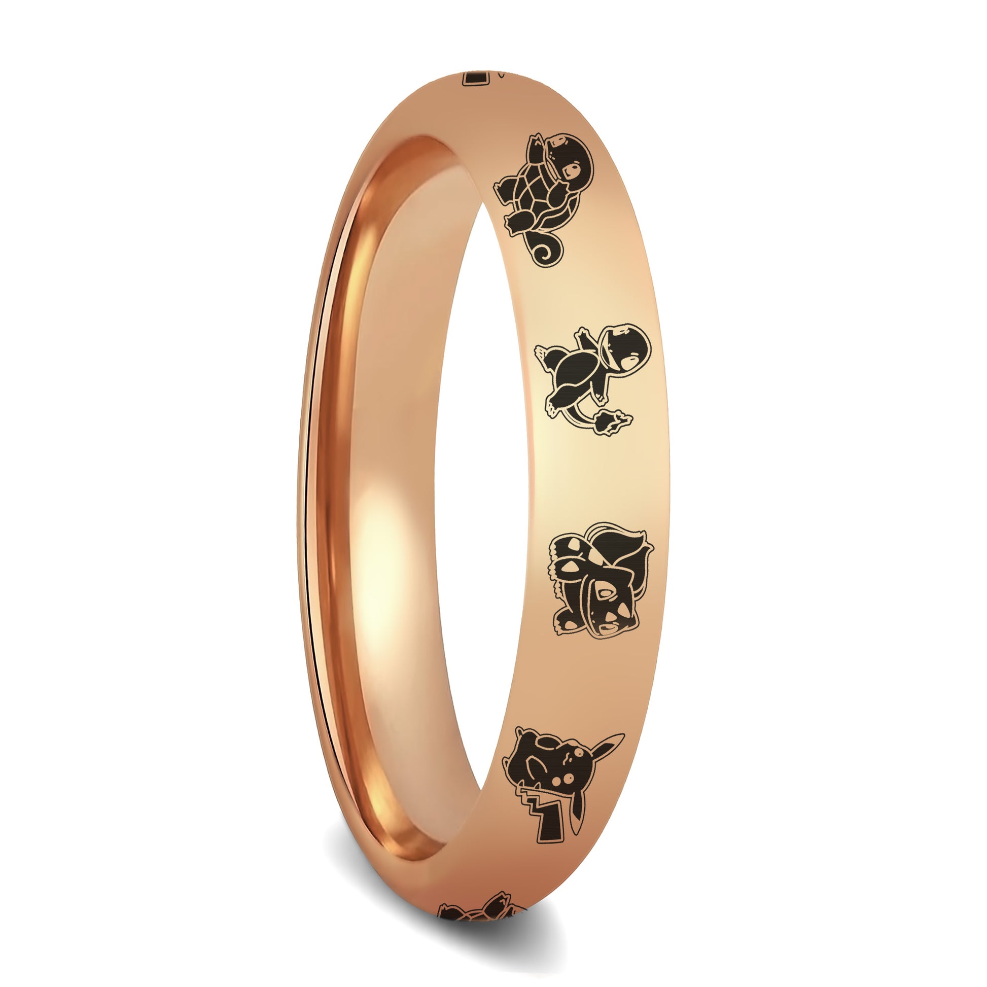 Anillo de boda de tungsteno grabado con Pokemon Pikachu Charmander Squirtle Bulbasaur
