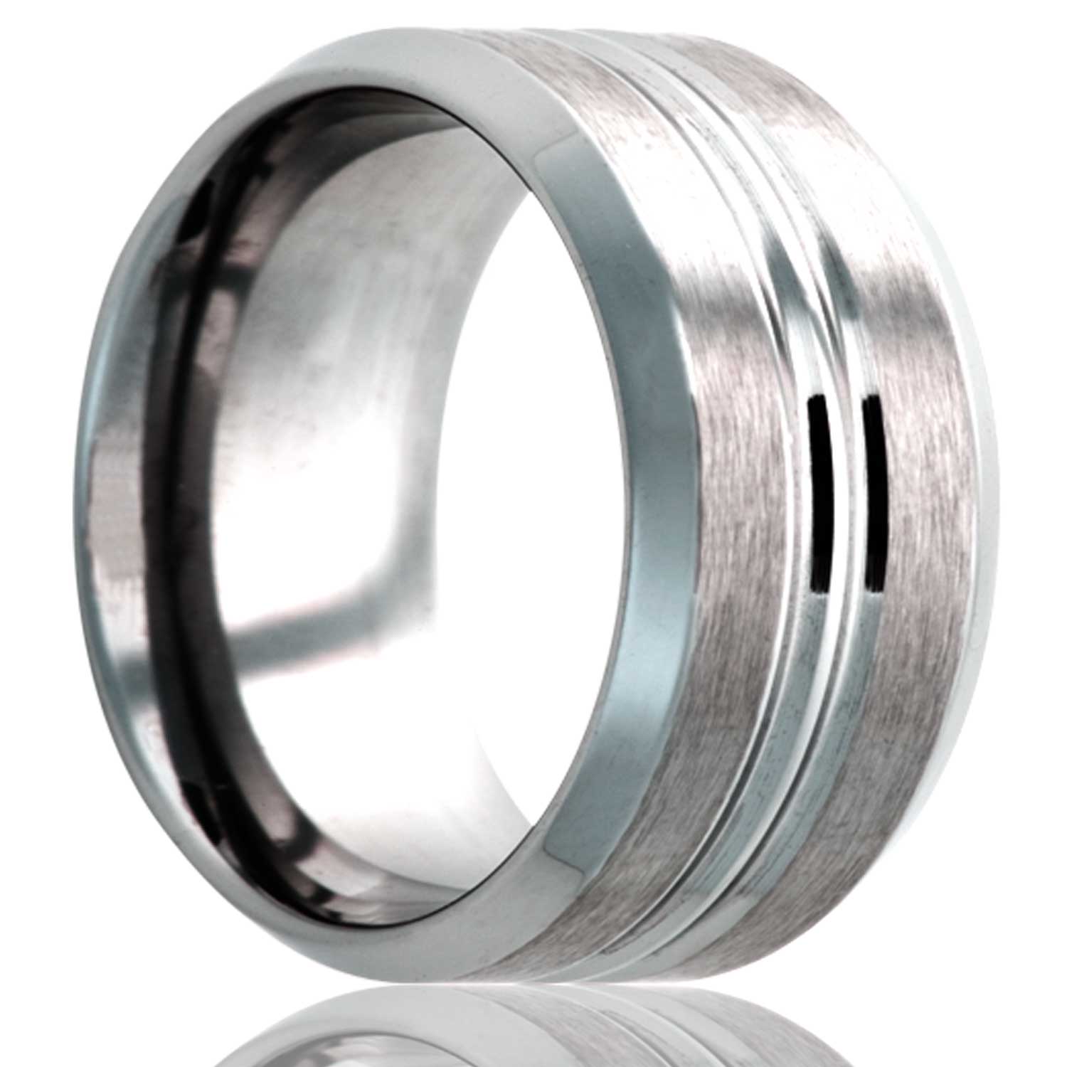 Alianza de boda de tungsteno acanalado con acabado satinado y bordes biselados
