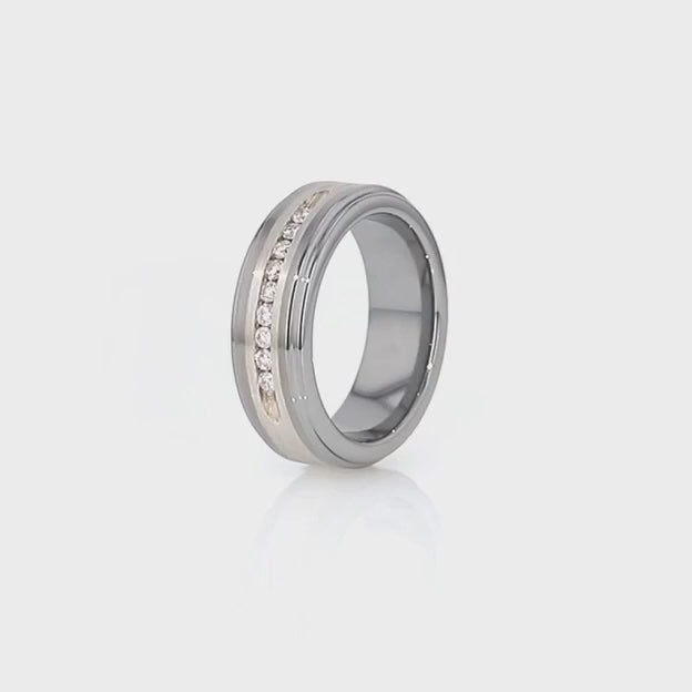 Alianza de boda de tungsteno para hombre con incrustaciones de plata y 9 diamantes