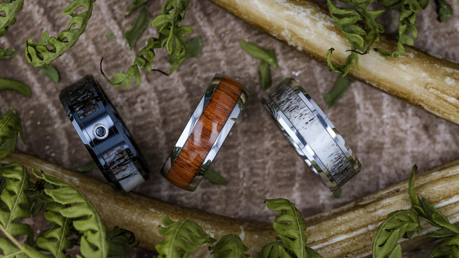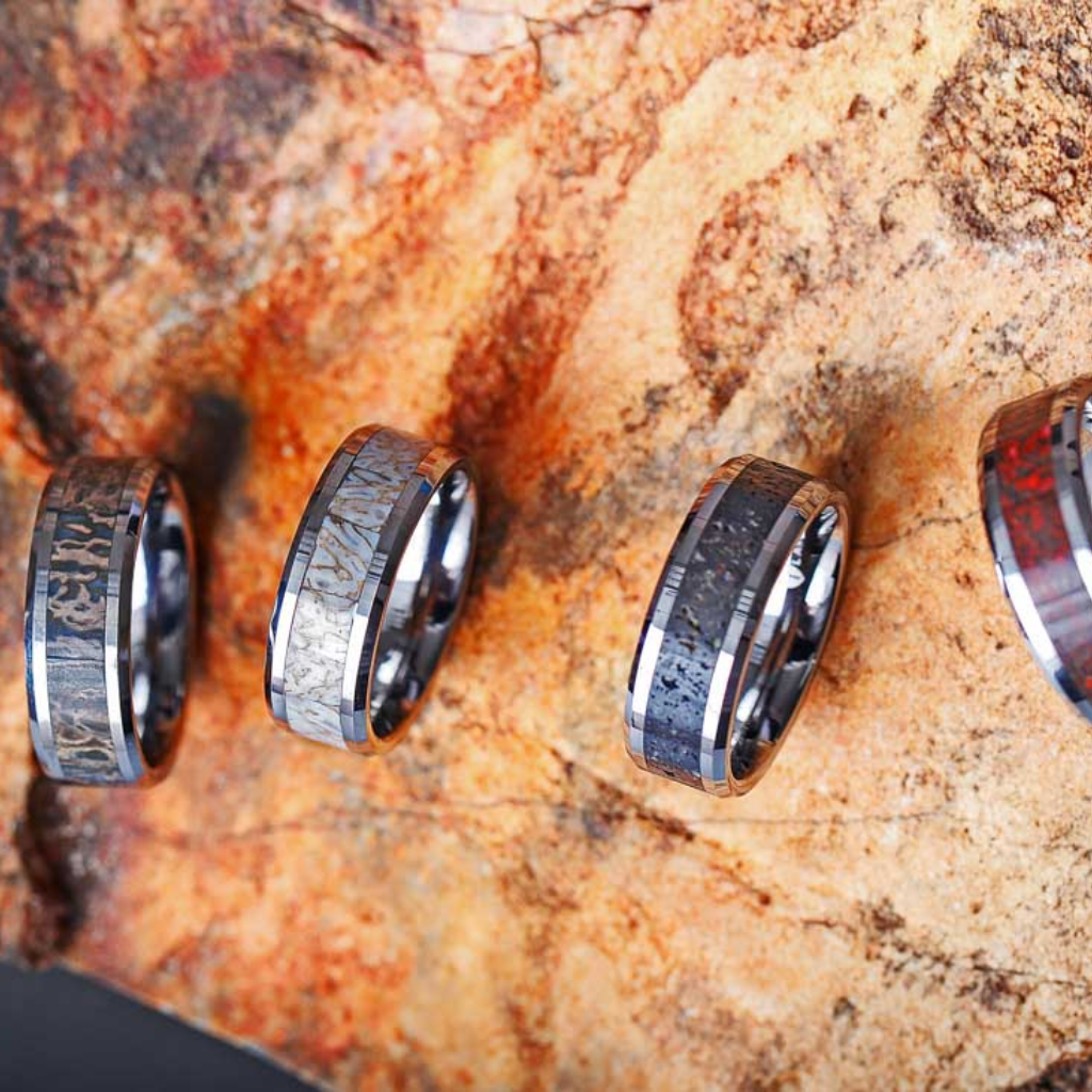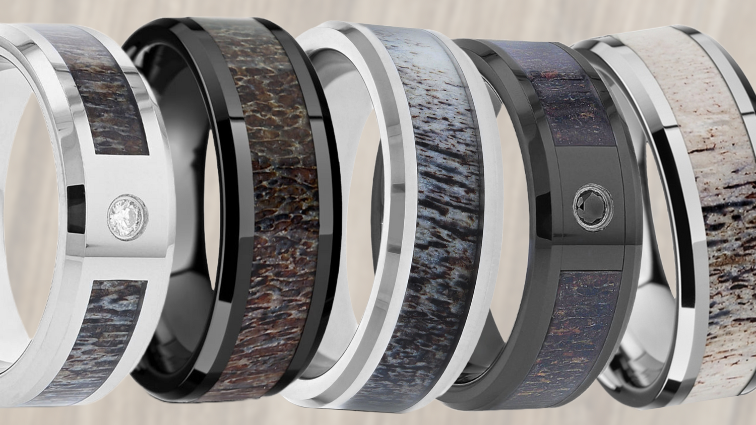 Bandes de mariage assorties pour couple incrusté de bois de cerf