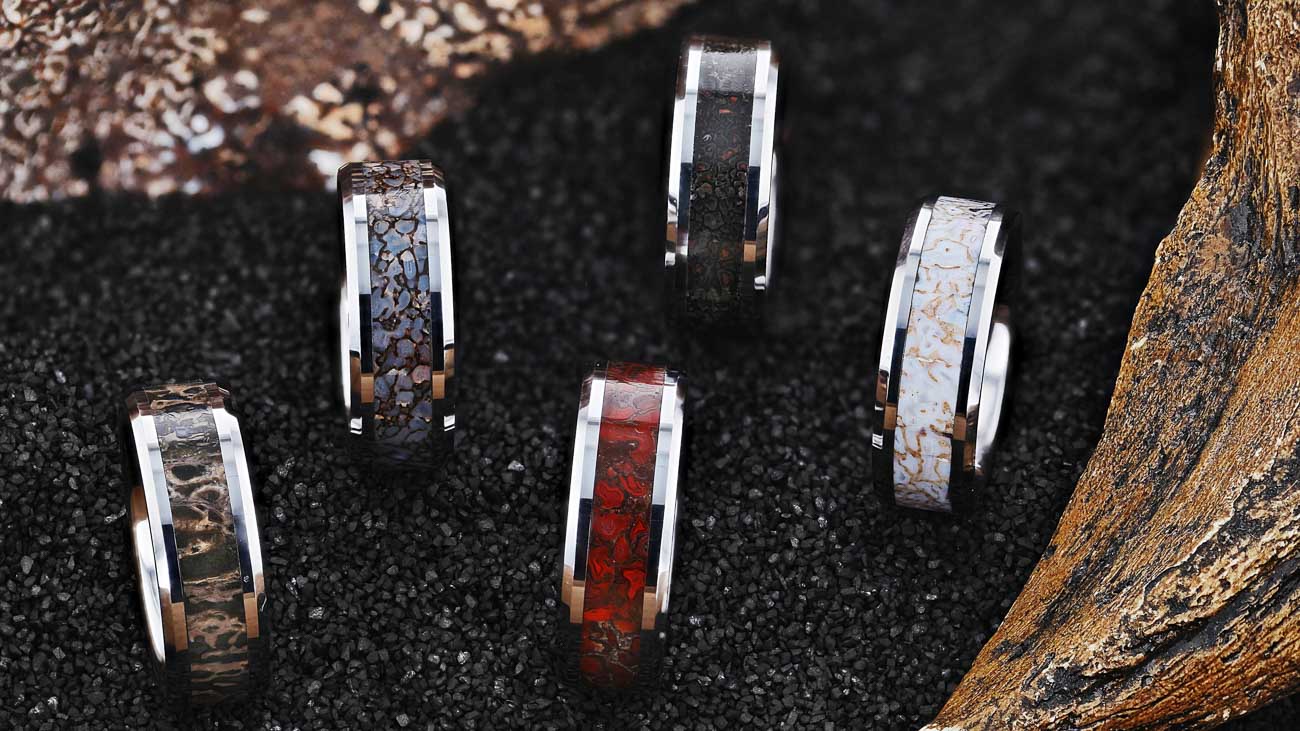 Bandes de mariage pour femmes en os de dinosaure Les bagues en...
