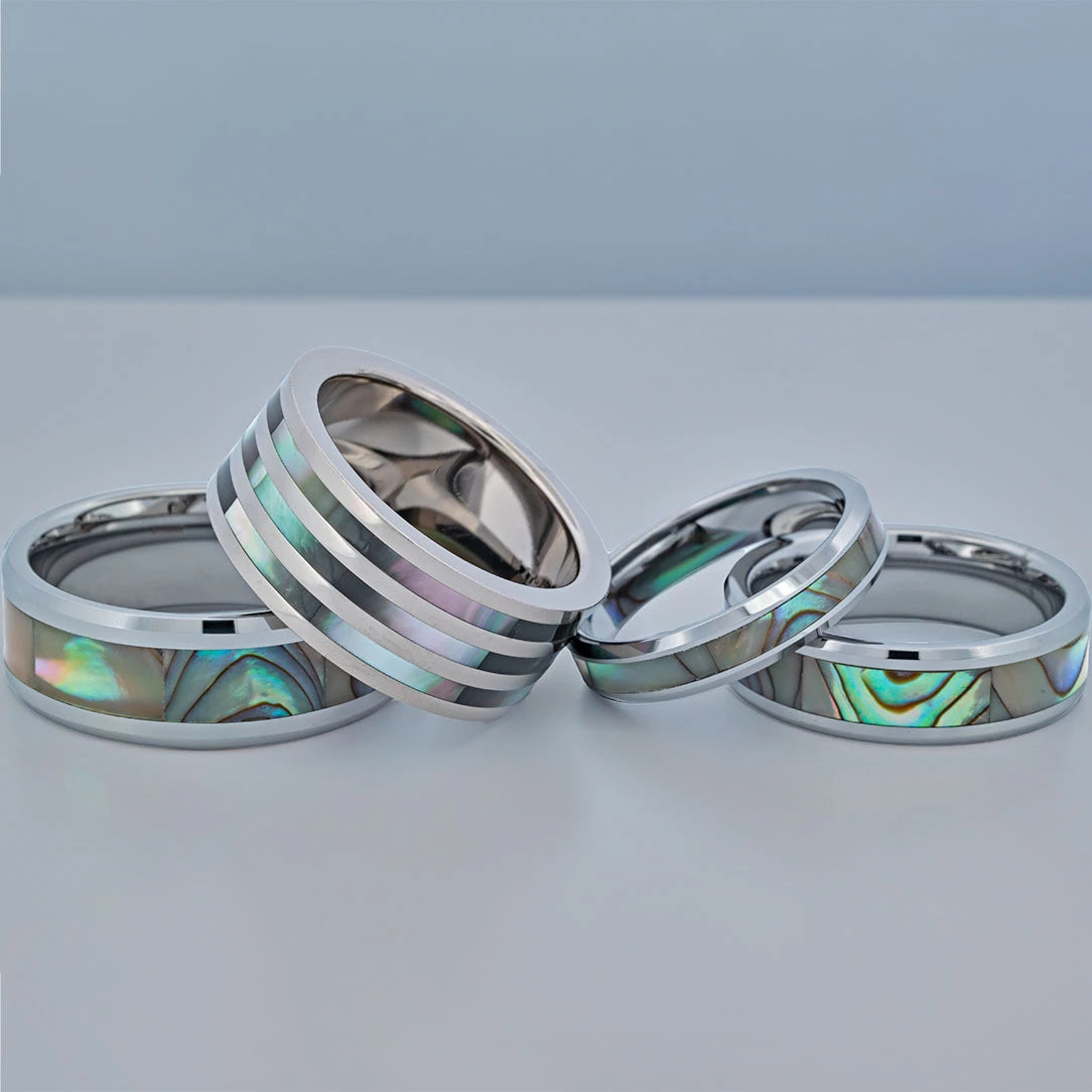 Alliances assorties pour couple incrusté de nacre Nous vous présentons notre collection...