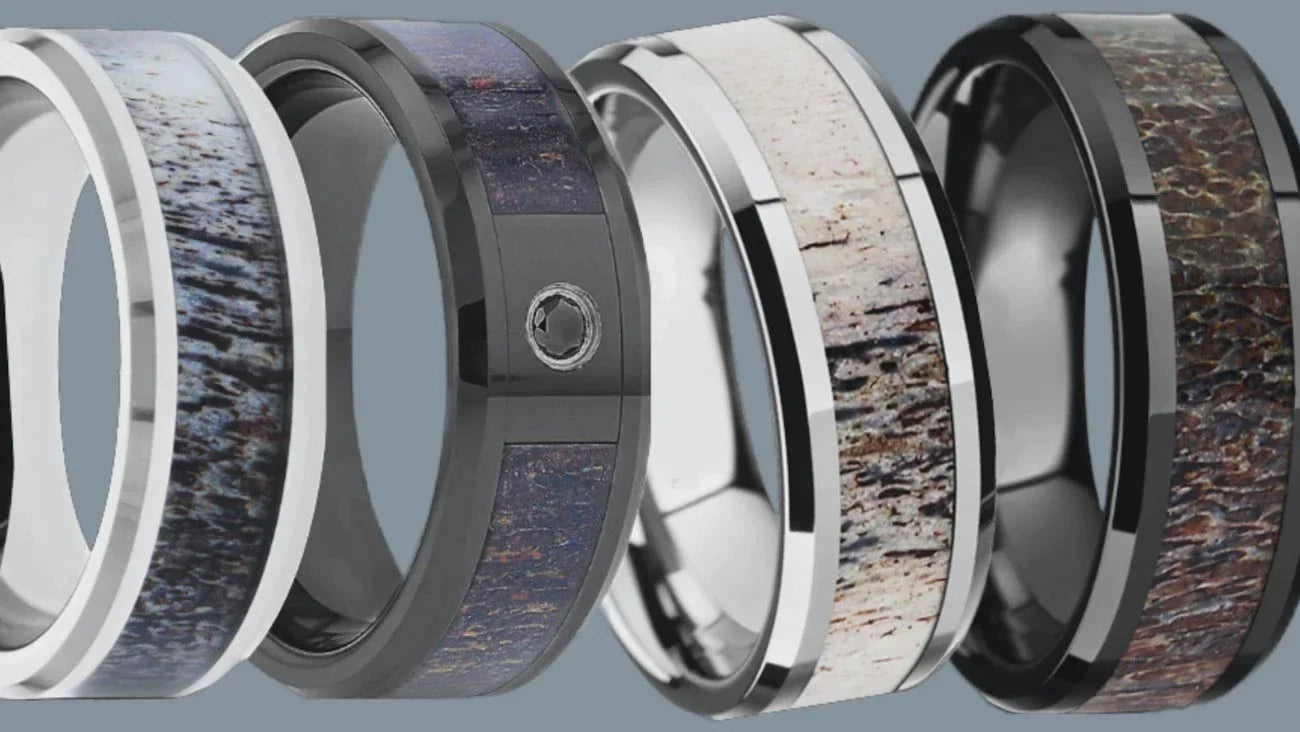 Bandes de mariage assorties pour couple incrusté de bois de cerf Présentation...