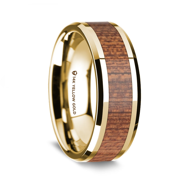 Alliance pour homme en or jaune 14 carats avec incrustation en bois de cerisier