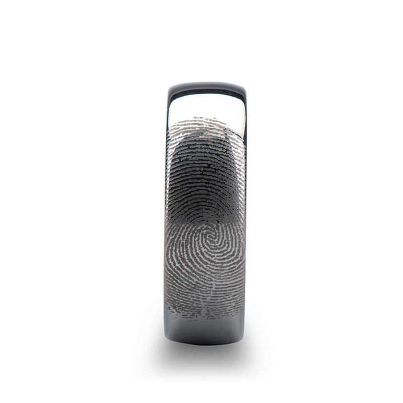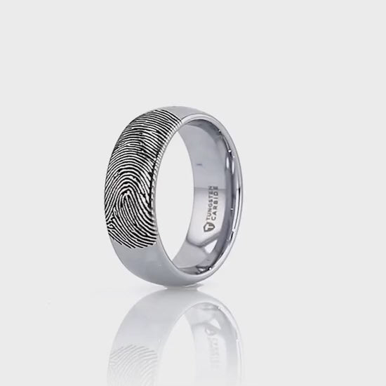 Bague pour hommes en tungstène bombé gravée par empreinte digitale personnalisée