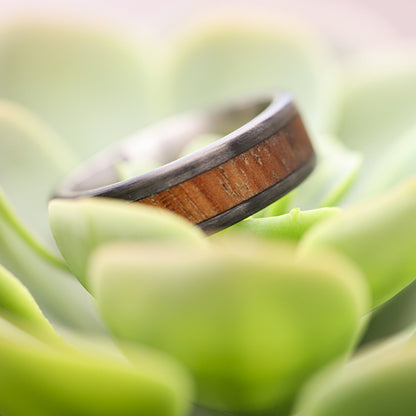 Alliance en tungstène pour homme avec incrustation de bois de koa et diamant