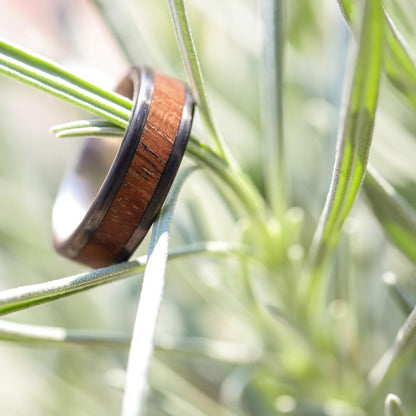 Alliance en tungstène pour homme avec incrustation en bois d'acajou
