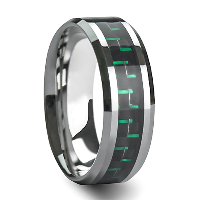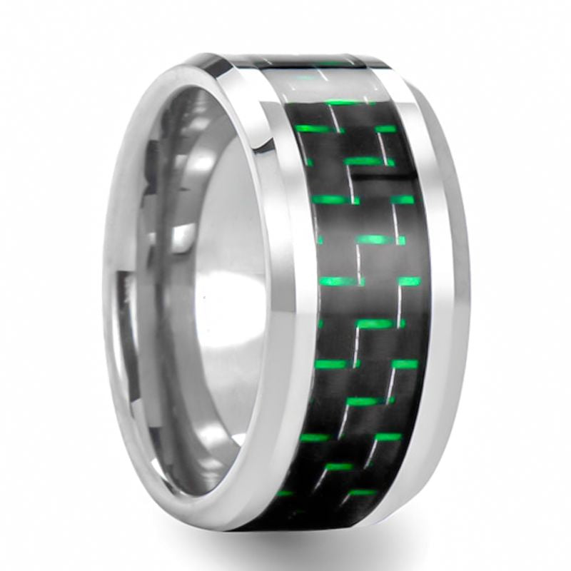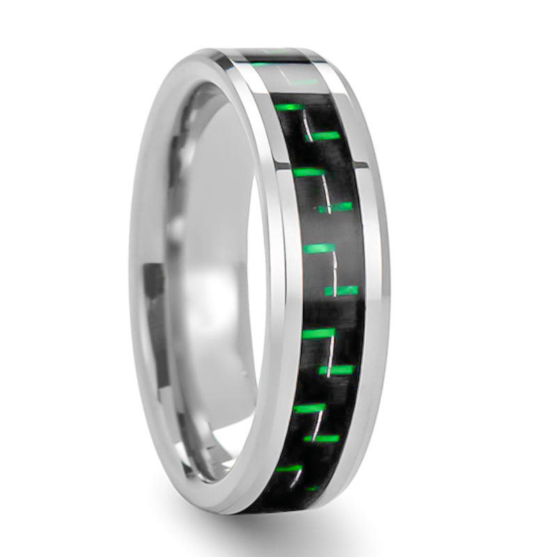 Alliance en tungstène pour homme avec incrustation en fibre de carbone noire et verte