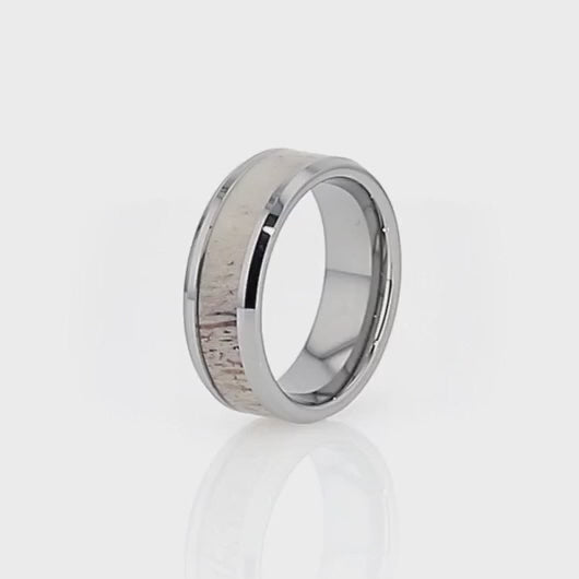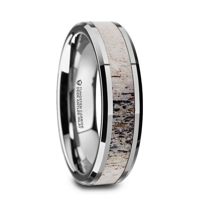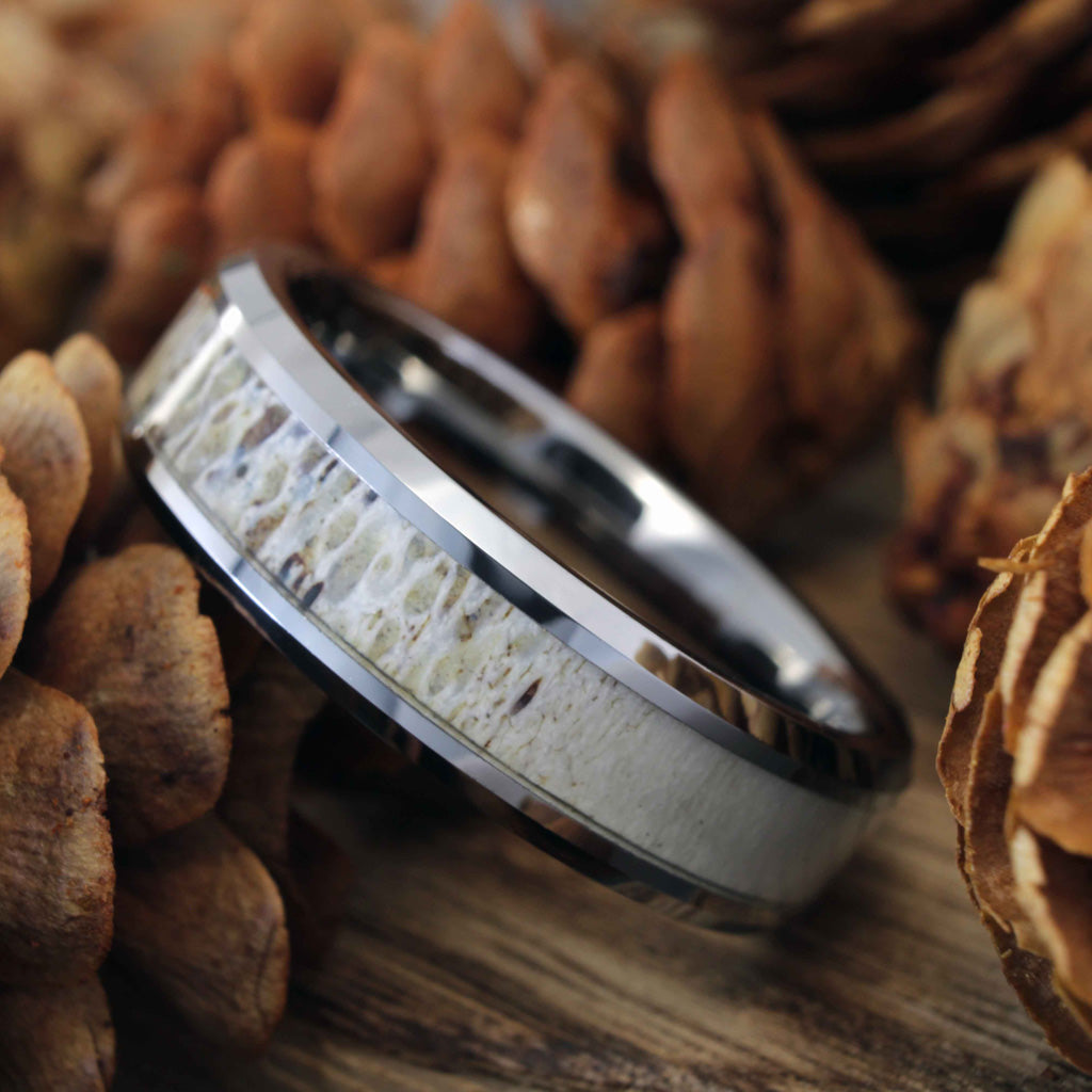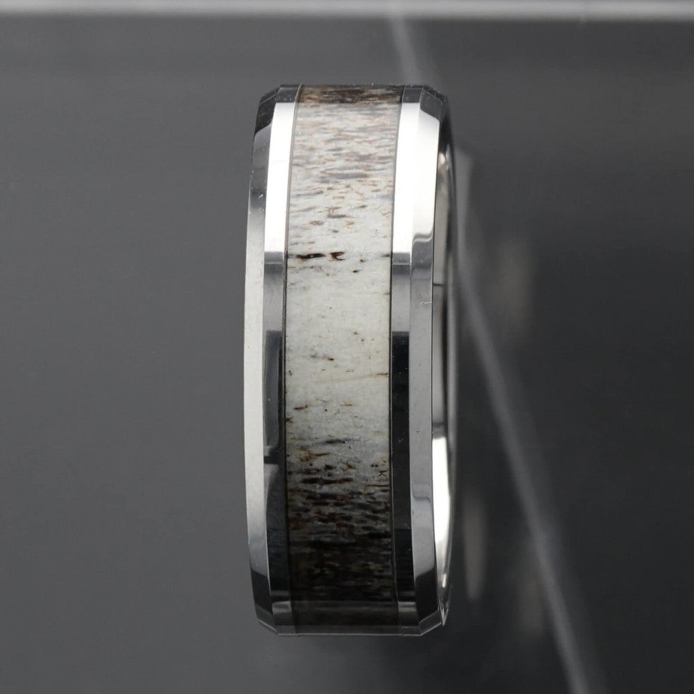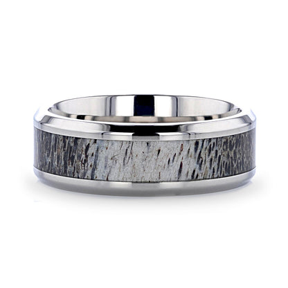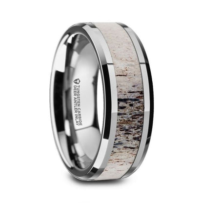 Alliance en tungstène pour homme avec incrustation de bois de cerf ombré
