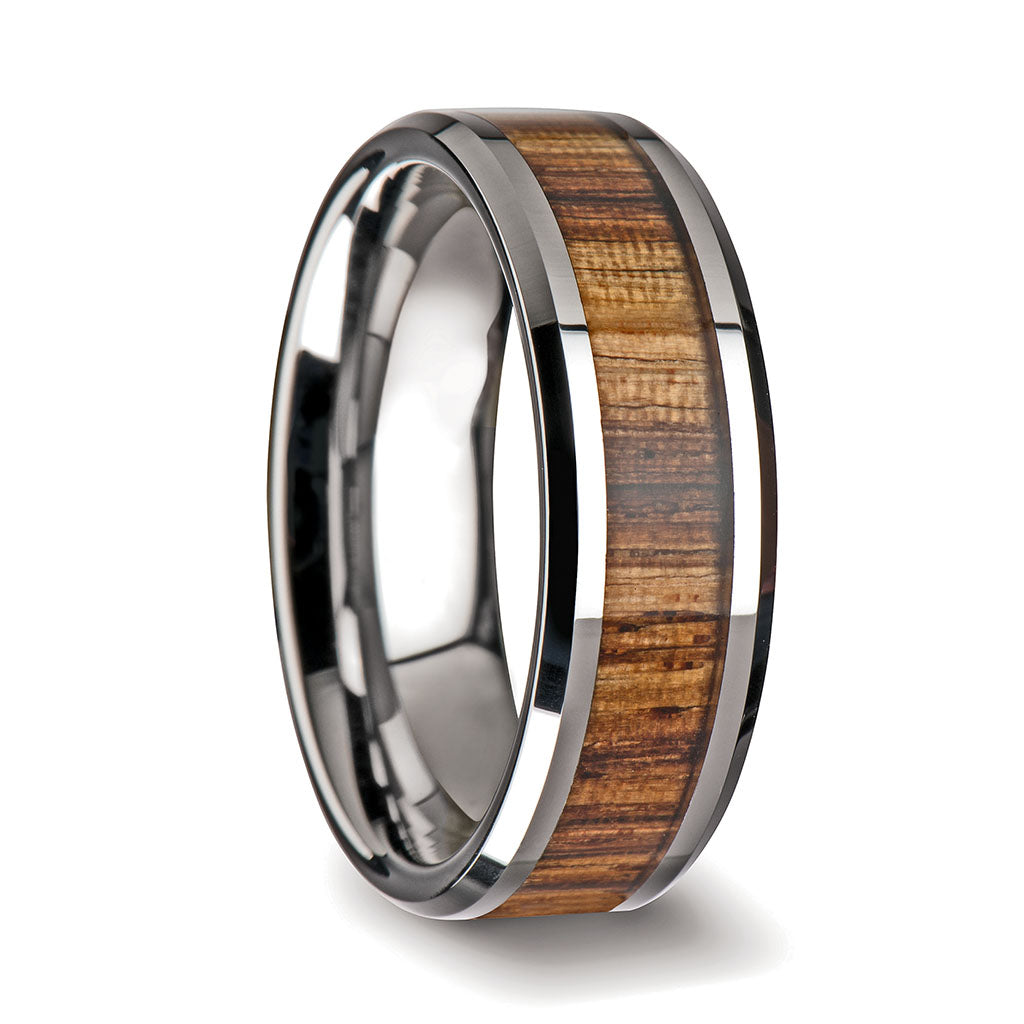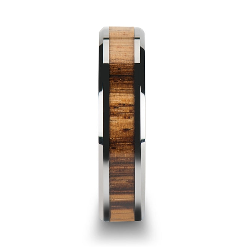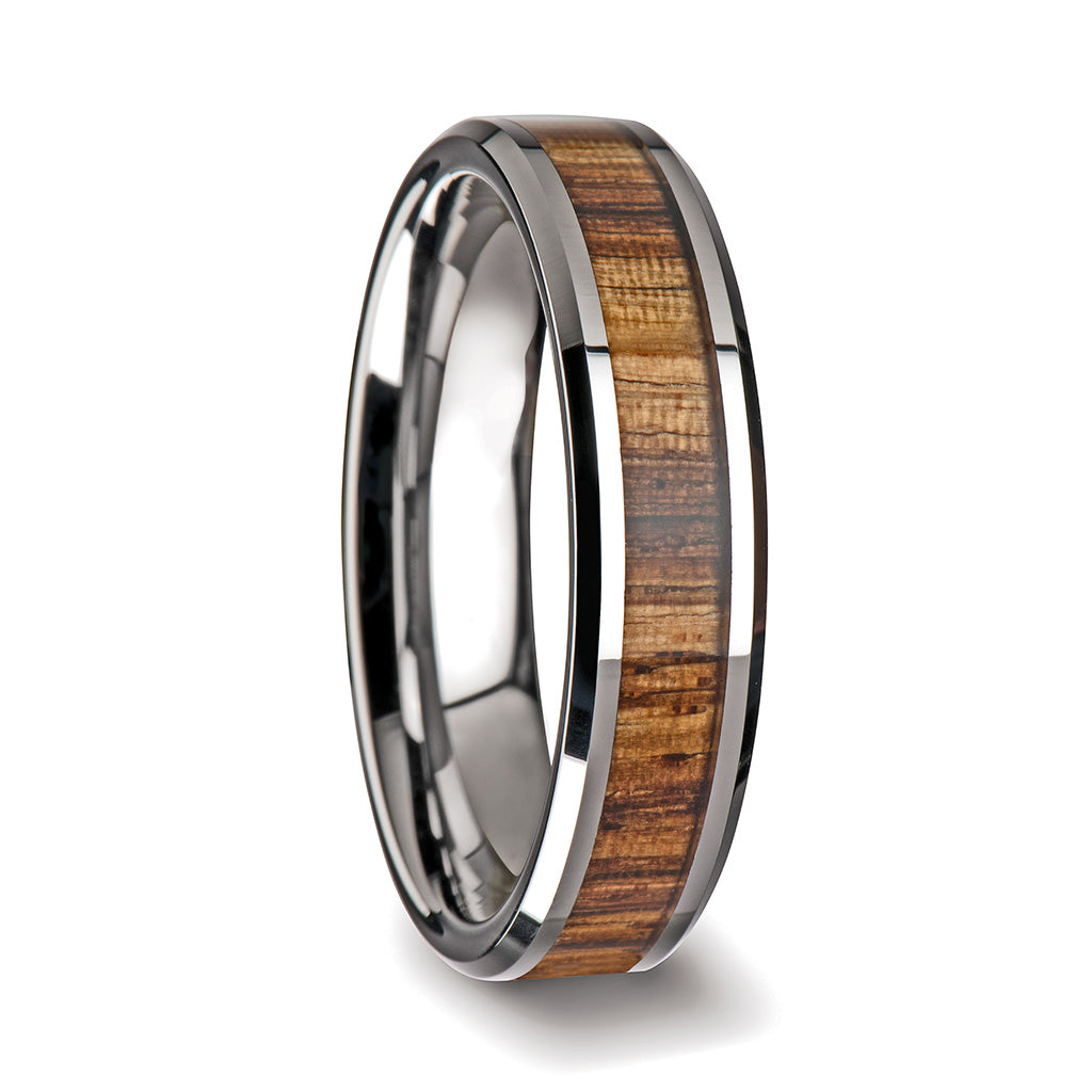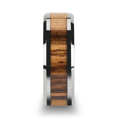 Alliance en tungstène pour femme avec incrustation de bois de zèbre