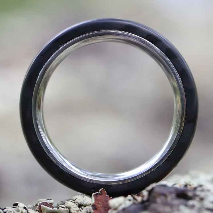 Alliance pour homme en céramique noire avec fibre de carbone noire et verte et émeraude