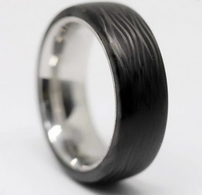 Vous cherchez quelque chose d’un peu différent et d’aussi audacieux que possible ? Cette bande en fibre de carbone ondulée est tout cela et bien plus encore. L'anneau ultra-léger est fabriqué à partir d'un matériau de luxe de nouvelle génération, la fibre de carbone, et est conçu pour montrer la résistance des éléments internes de la fibre de carbone. Cet anneau est conçu avec des motifs de vagues en relief qui semblent orbiter autour de la circonférence de l'anneau. Cette beauté symbolise l’engagement, la force et la puissance de votre union incassable. Cette alliance moderne et intemporelle mettra en valeur sans effort votre personnalité et votre style. Son design complexe en fait un symbole unique et impressionnant d’un lien conjugal qui résistera à l’épreuve du temps.