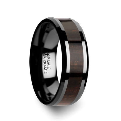 Alliance pour homme en céramique noire avec incrustation en bois d'ébène noir