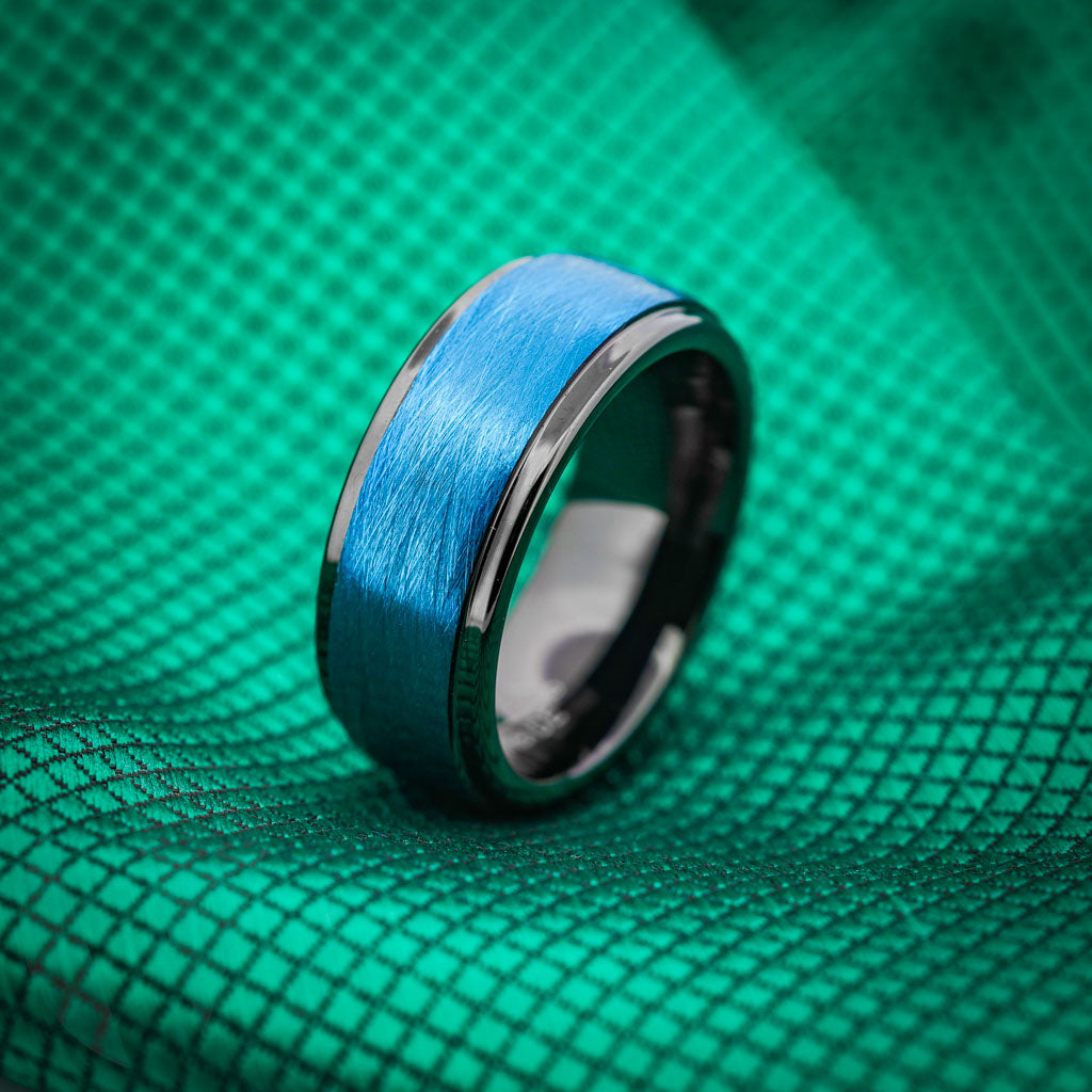 Alliance pour homme en tungstène noir brossé en fil bleu