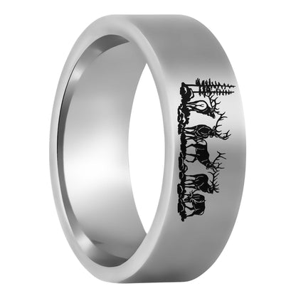 Alliance en tungstène pour hommes Deer & Mountain Range