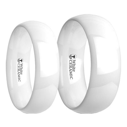 Ensemble d'alliances assorties pour couple en céramique blanche à finition bombée