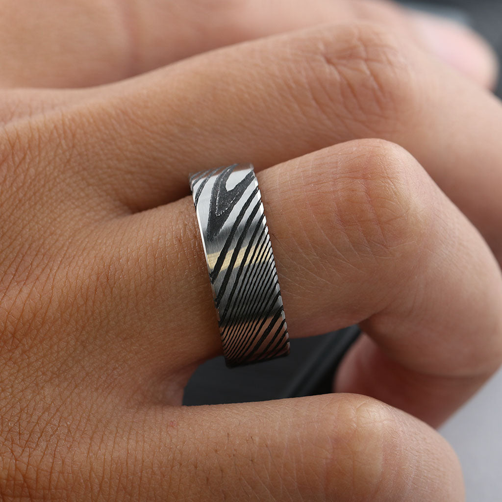 Alliance pour homme en acier de Damas noir plat
