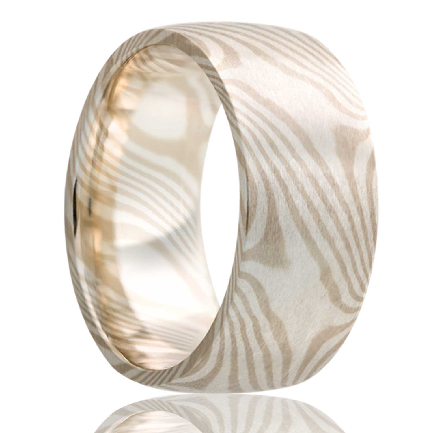 Alliance en forme de dôme Mokume Gane en or blanc 14 carats et argent sterling