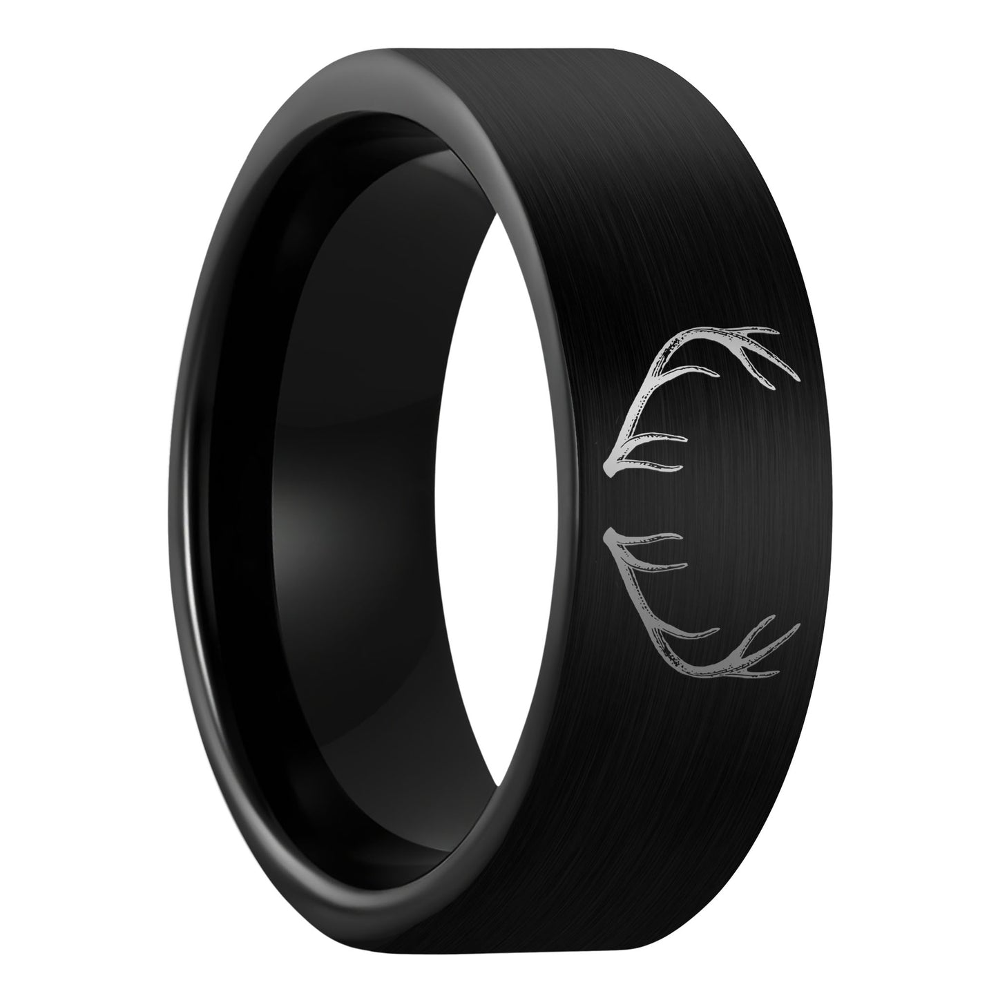 Alliance pour homme en tungstène noir brossé gravé en bois de cerf