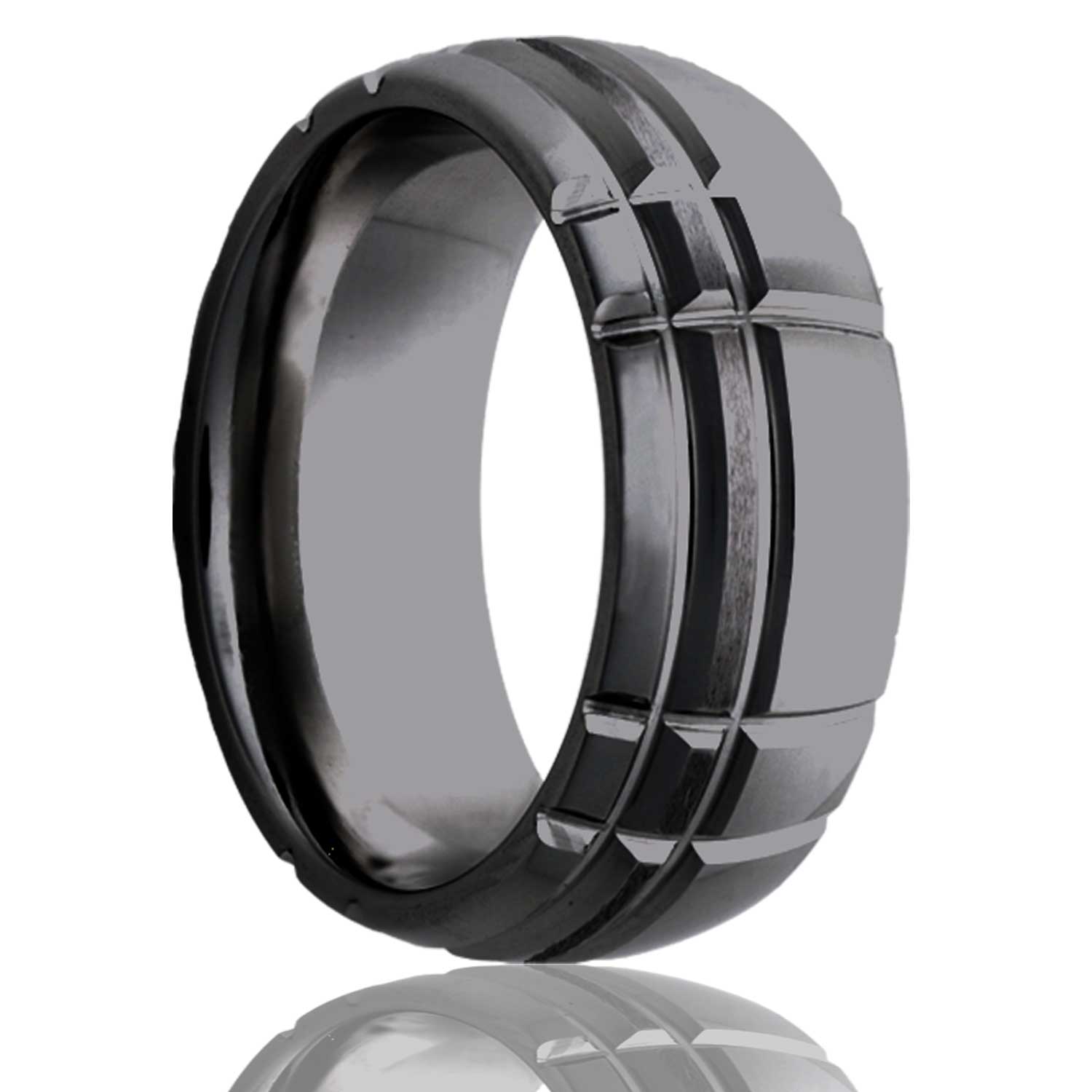 Alliance pour homme avec rainures croisées asymétriques et finition satinée en zirconium