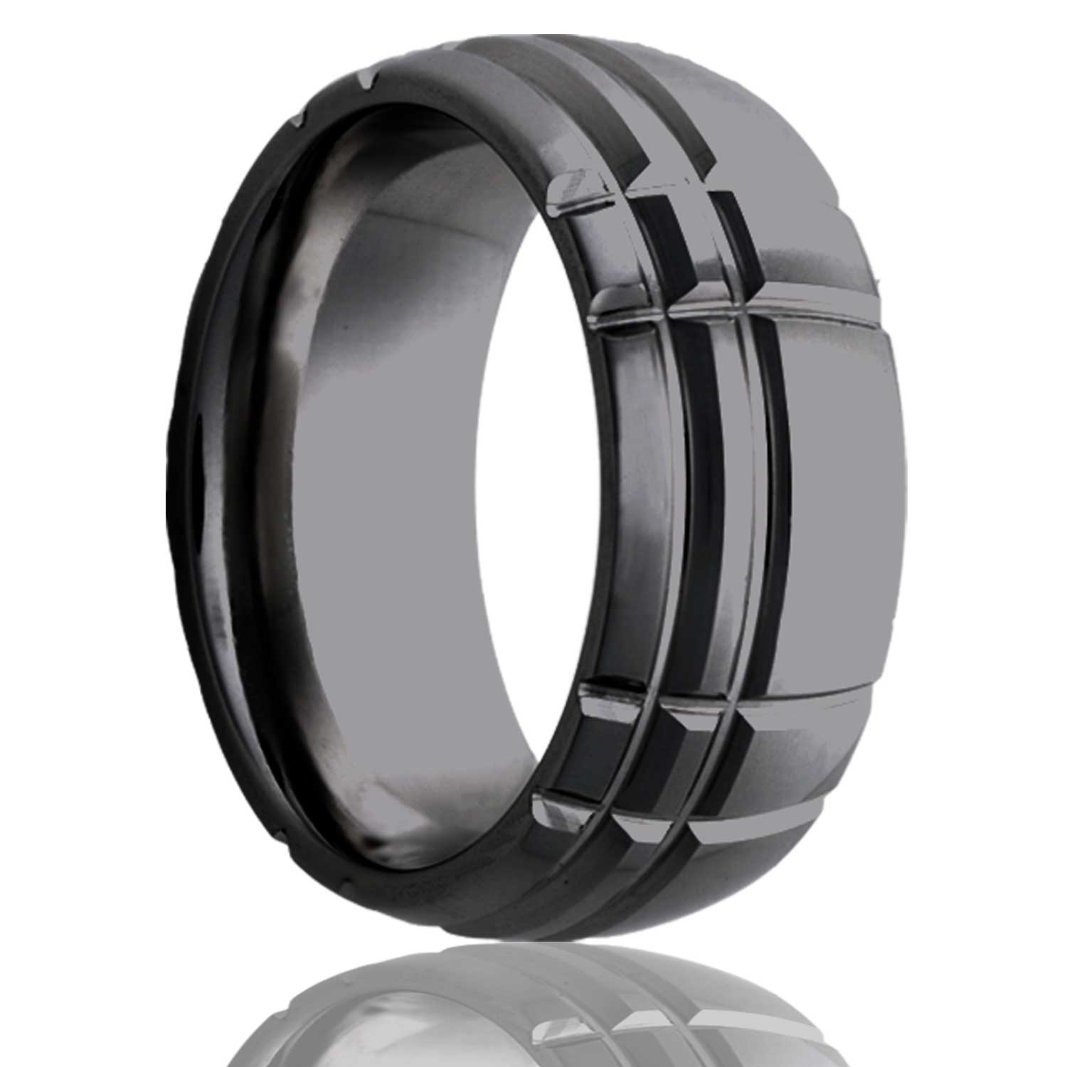 Alliance pour homme avec rainures croisées asymétriques et zirconium bombé