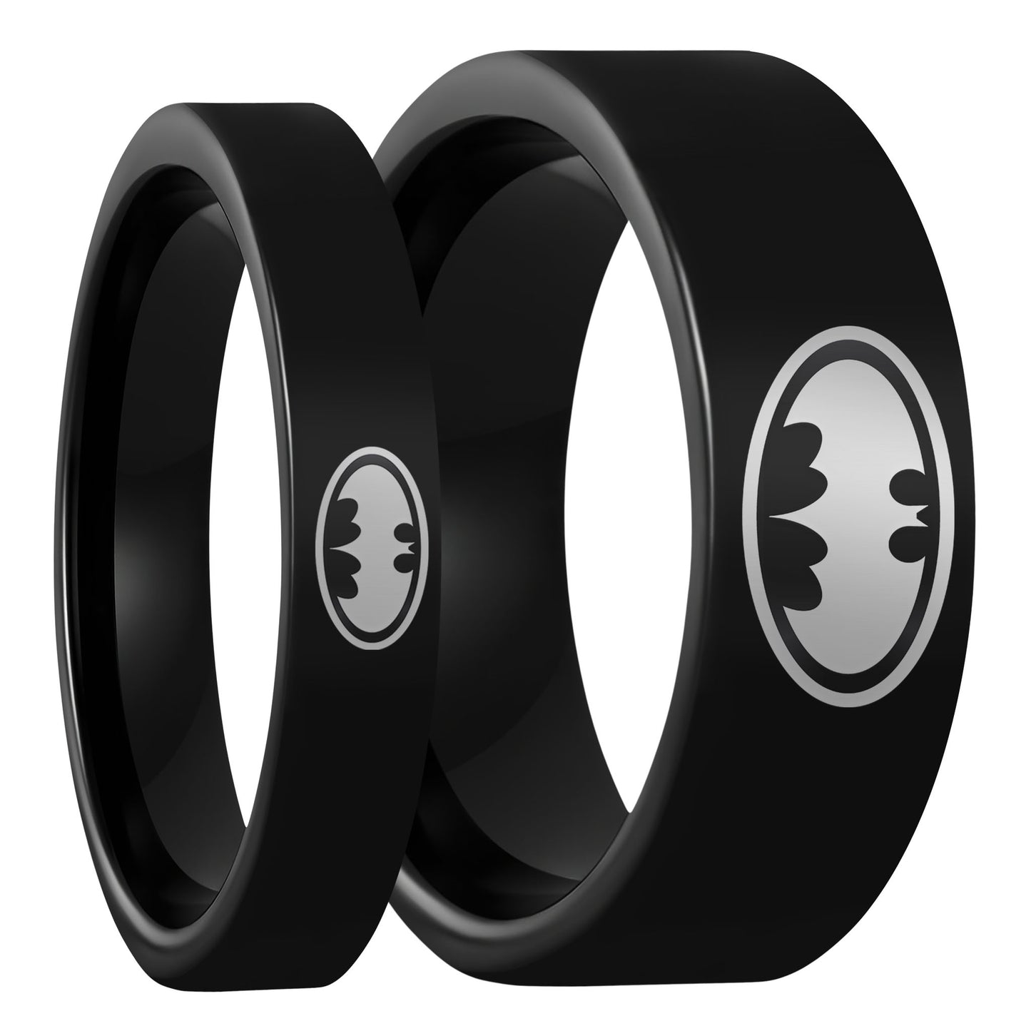 Ensemble d'alliances assorties pour couple Batman Black Tungsten