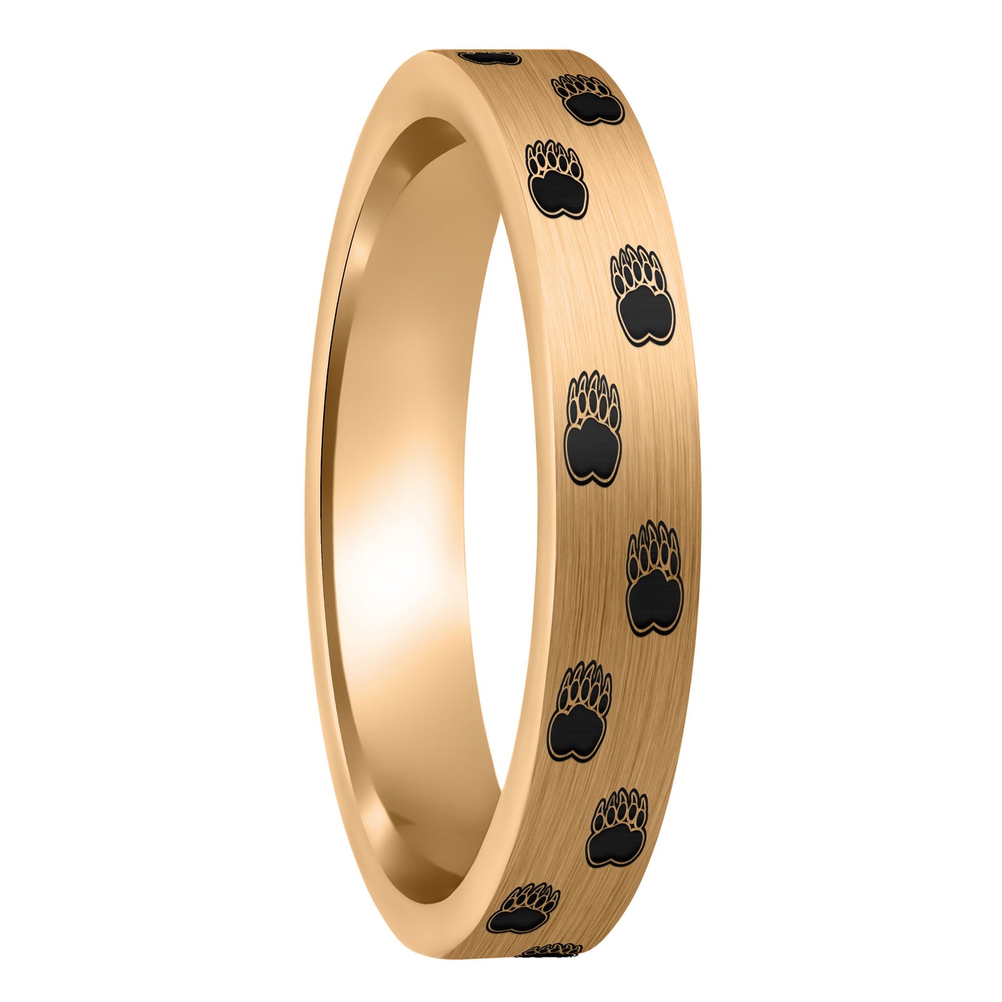 Bague pour femme en tungstène or rose brossé avec empreinte de patte d'ours