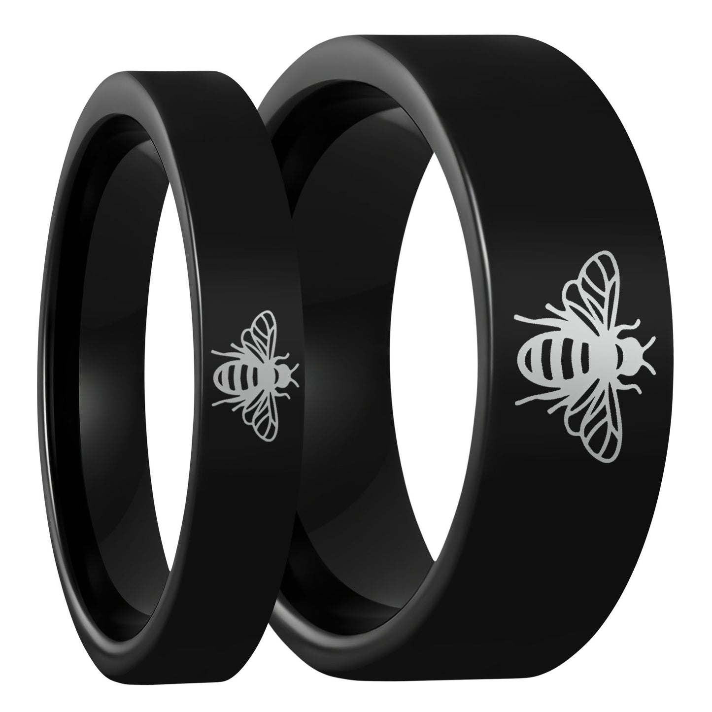 Ensemble d'alliances assorties pour couple en tungstène noir Bee