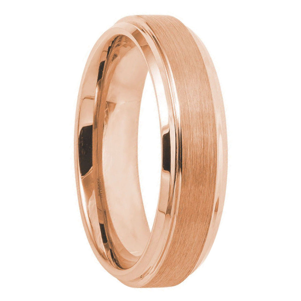 Alliance pour femme en tungstène or rose brossé avec bords biseautés