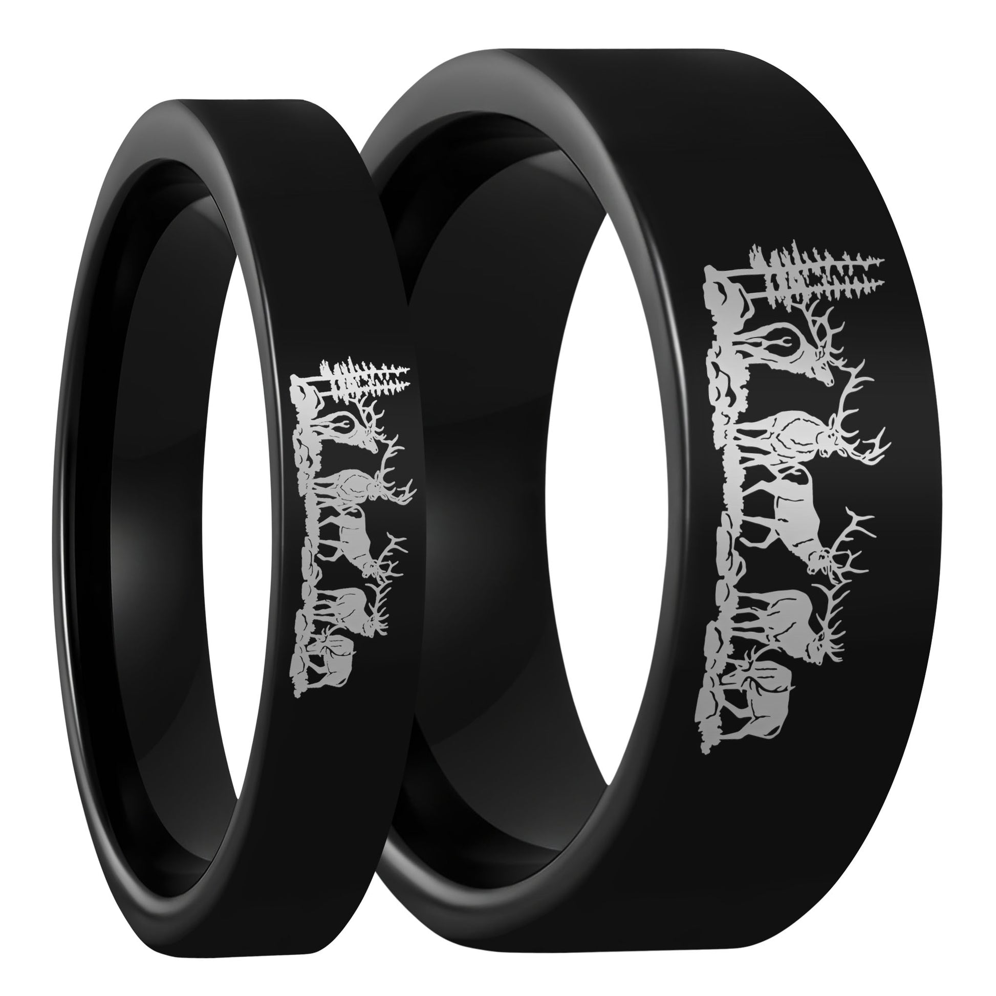 Ensemble d'alliances assorties pour couple en tungstène noir Bull Elk