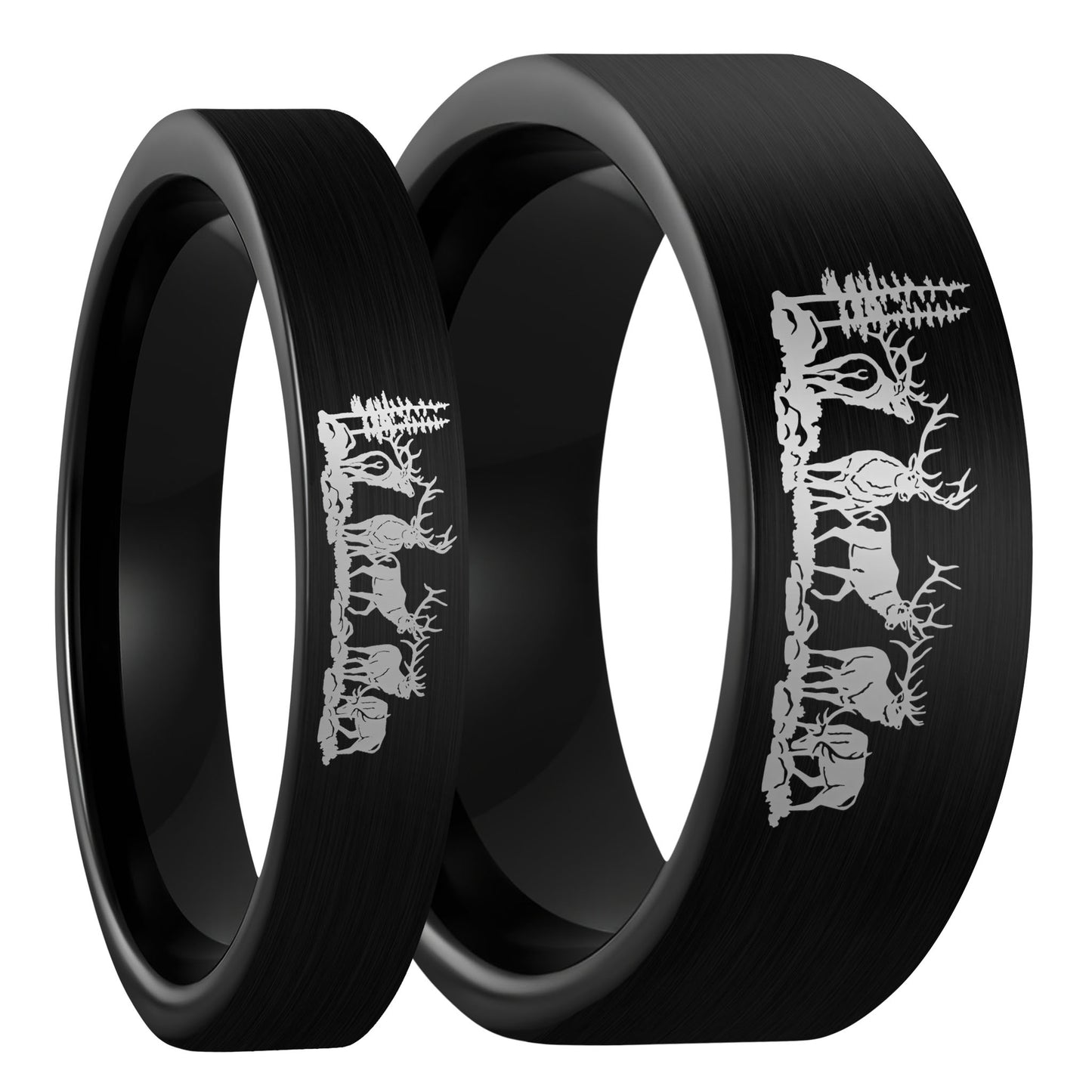 Ensemble d'alliances assorties pour couple en tungstène noir brossé Bull Elk