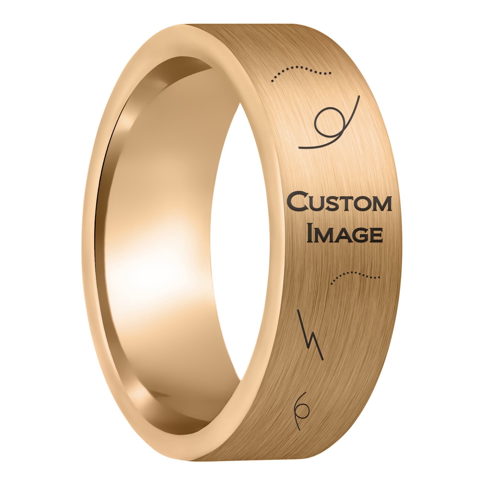 Bague pour homme en tungstène or rose brossé gravée avec image personnalisée