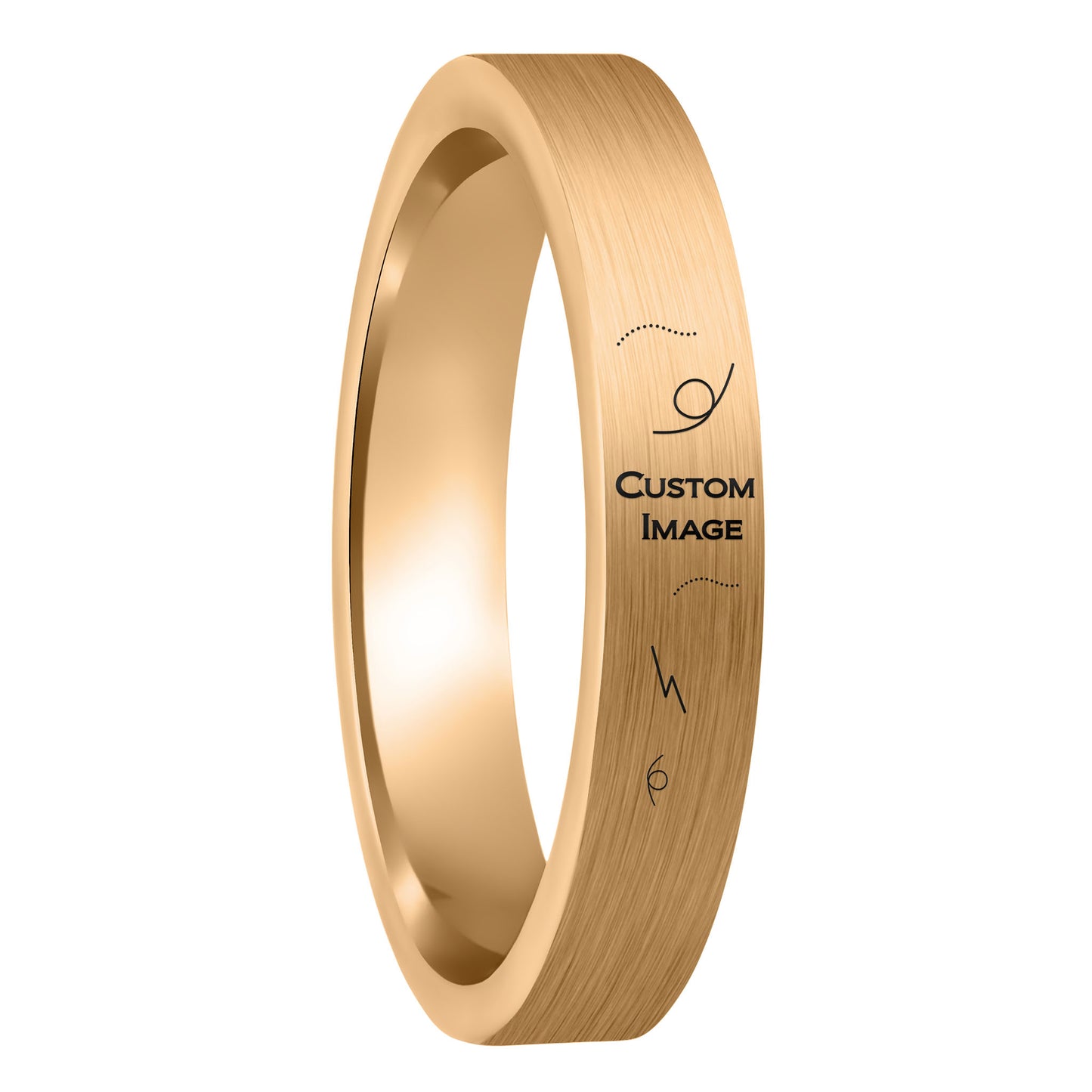 Bague pour femme en tungstène or rose brossé gravée avec image personnalisée