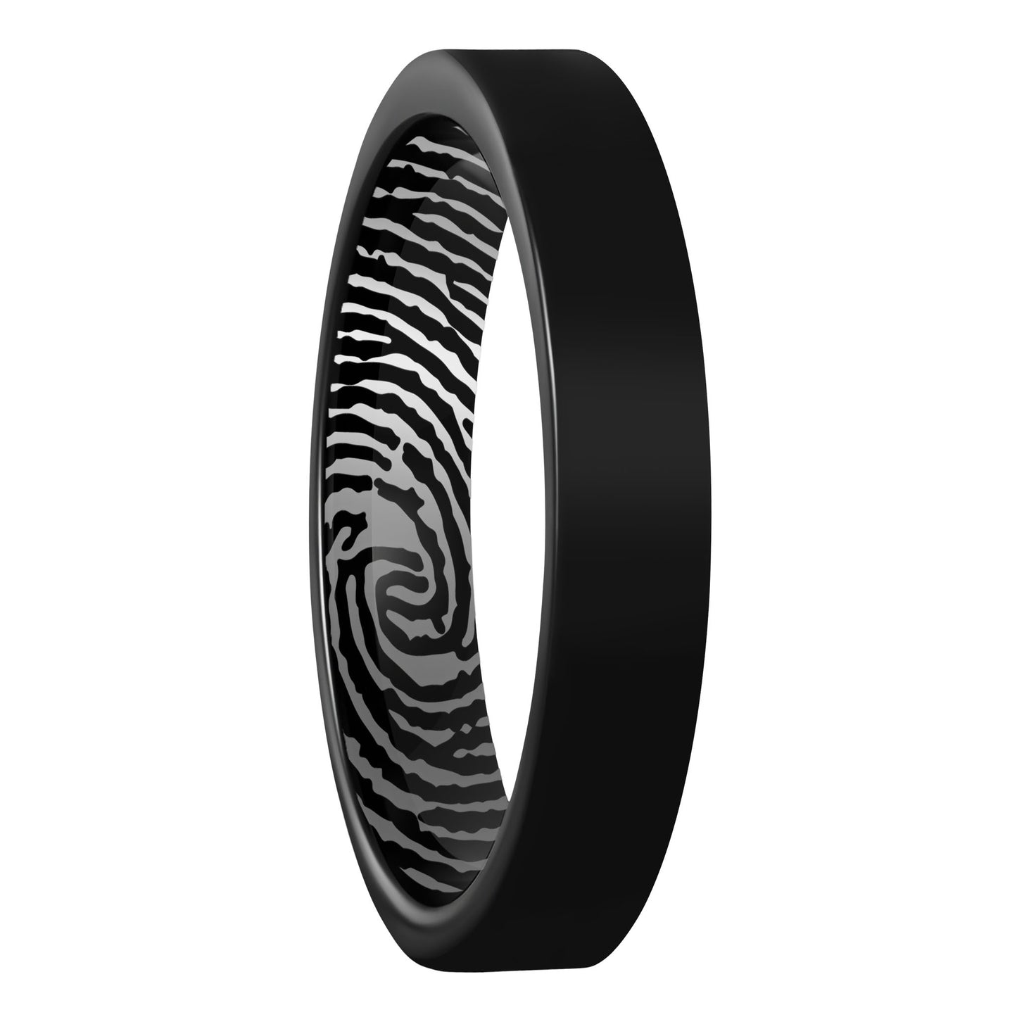 Bague pour femme en tungstène noir avec empreinte digitale intérieure personnalisée