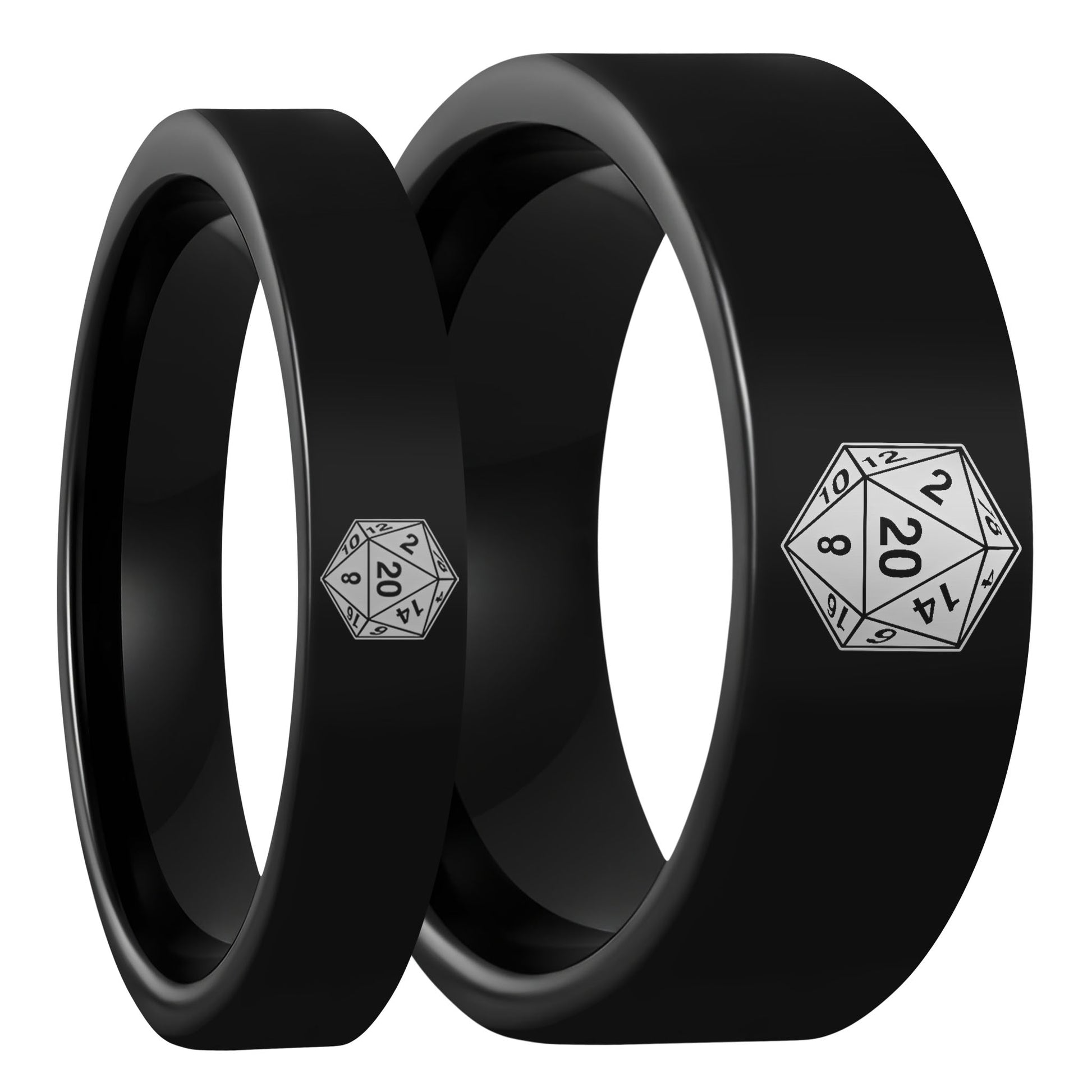 Ensemble d'alliances assorties pour couple en tungstène noir D20