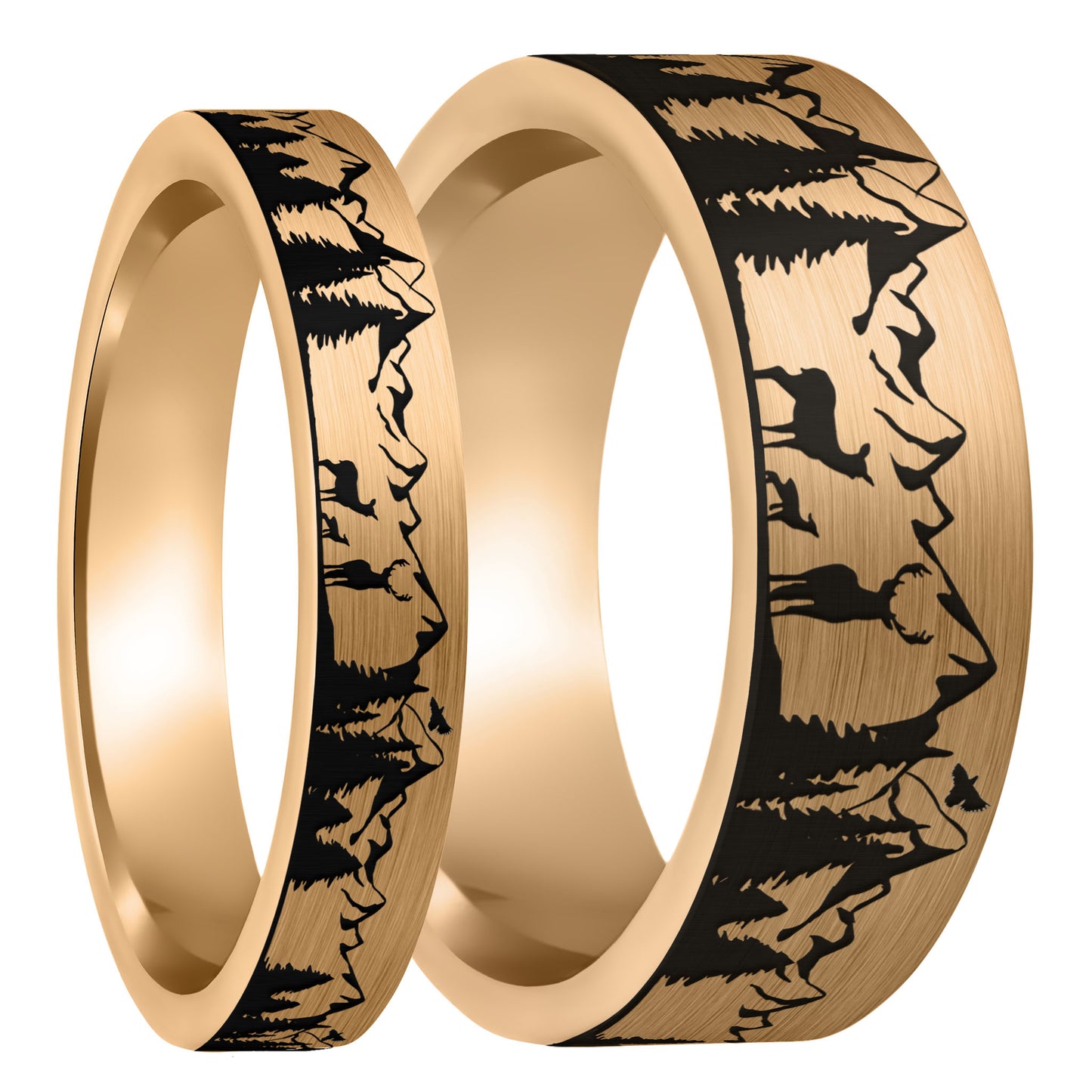 Ensemble d'alliances assorties pour couple en tungstène or rose brossé Deer Mountain Range