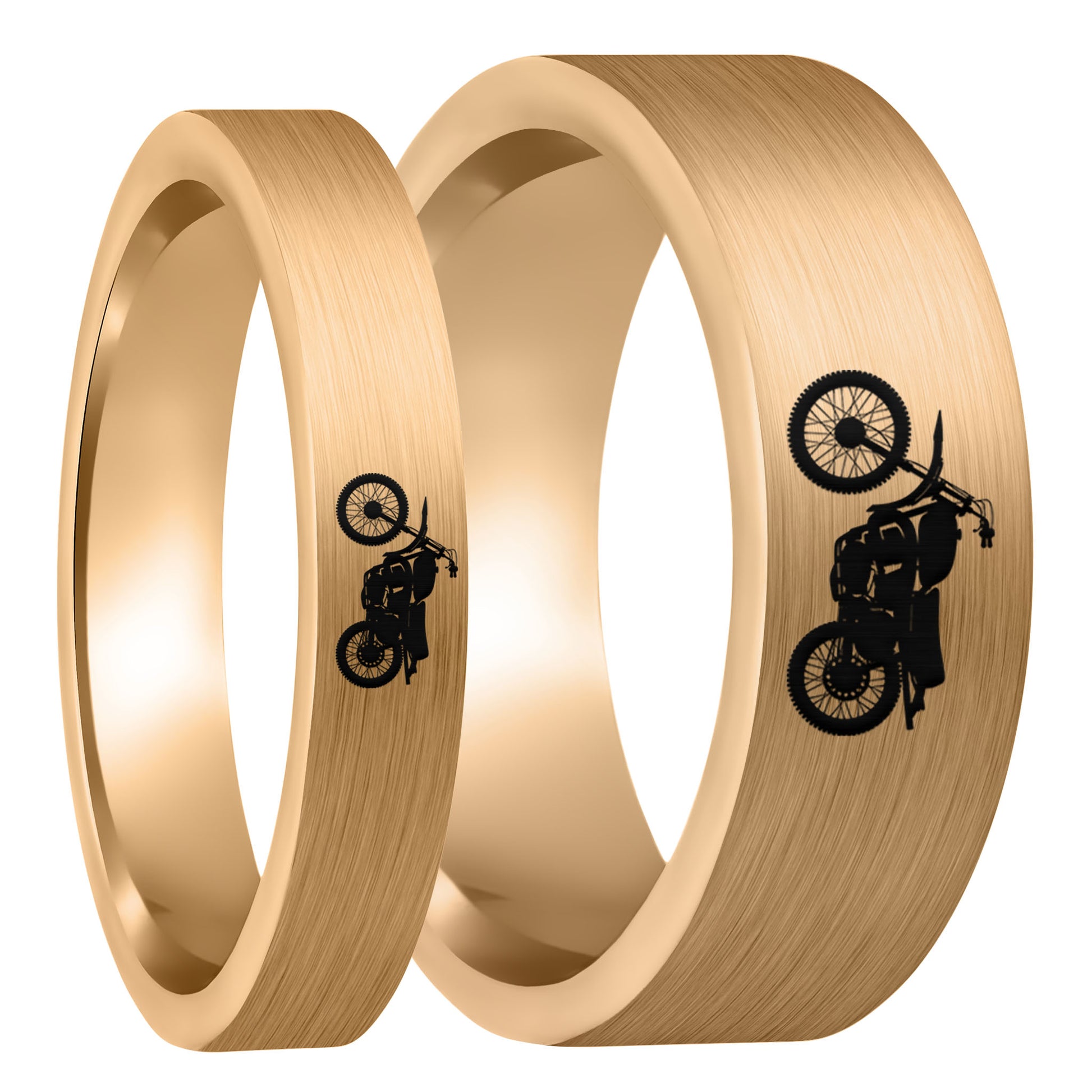 Ensemble d'alliances assorties pour couple en tungstène or rose brossé Dirt Bike