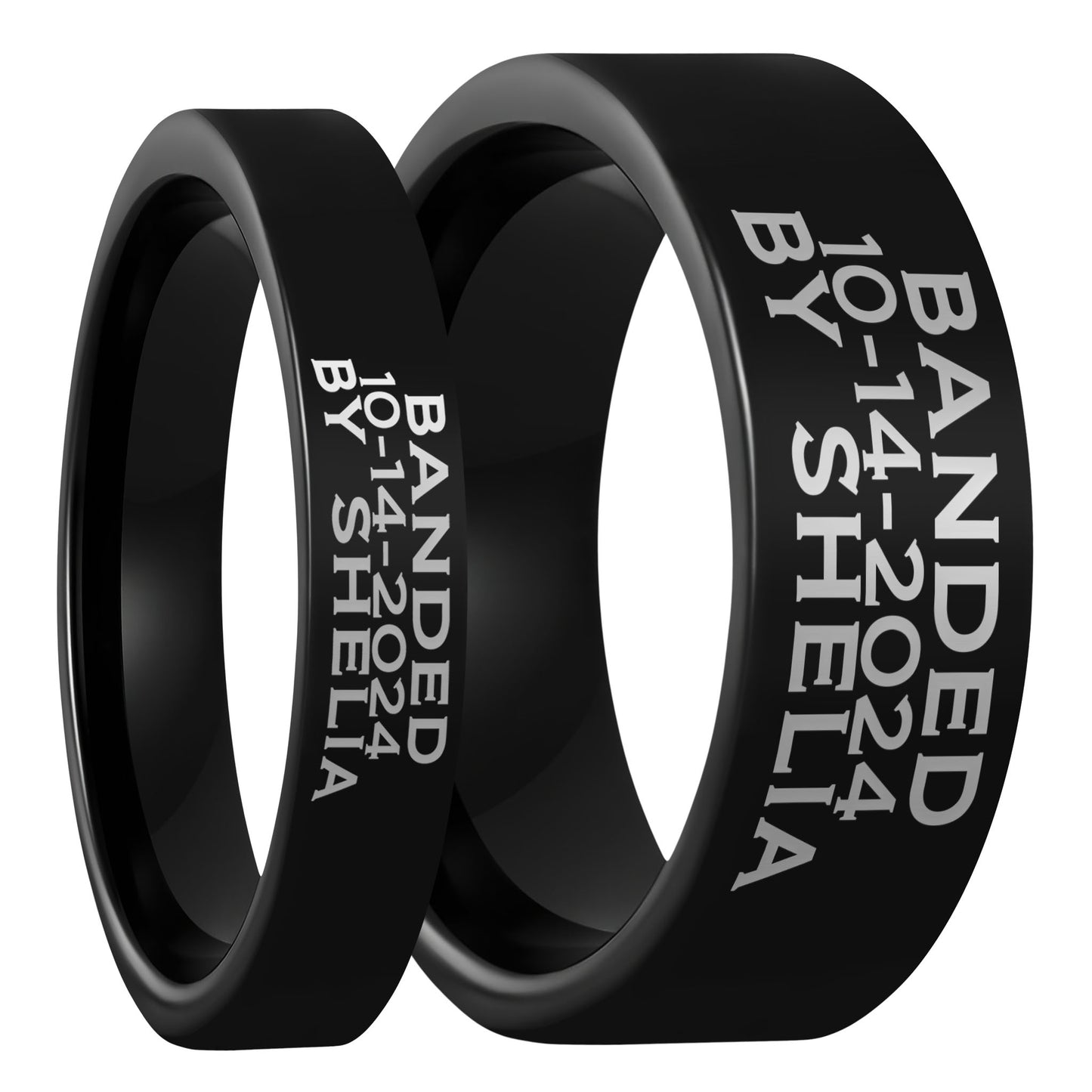 Duck Band Ensemble de bagues assorties pour couple en tungstène noir gravé sur mesure