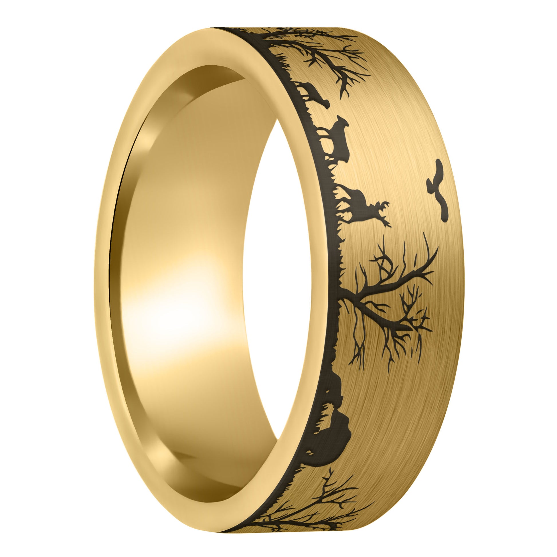 Alliance pour hommes en tungstène doré brossé avec scène d'animaux des prairies